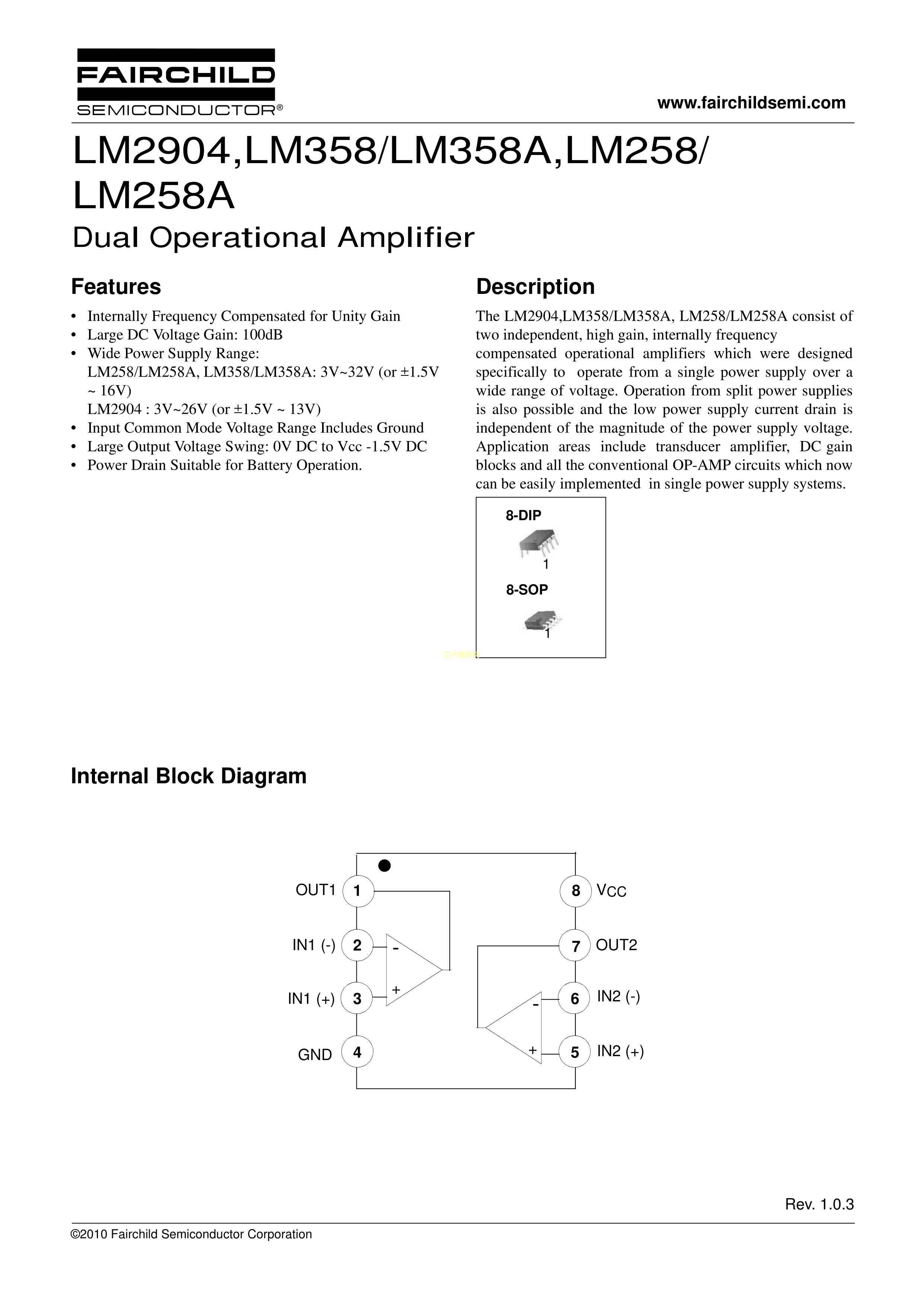 LM258AMX数据手册SOIC-8封装onsemi(安森美)PDF规格书,中英文下载