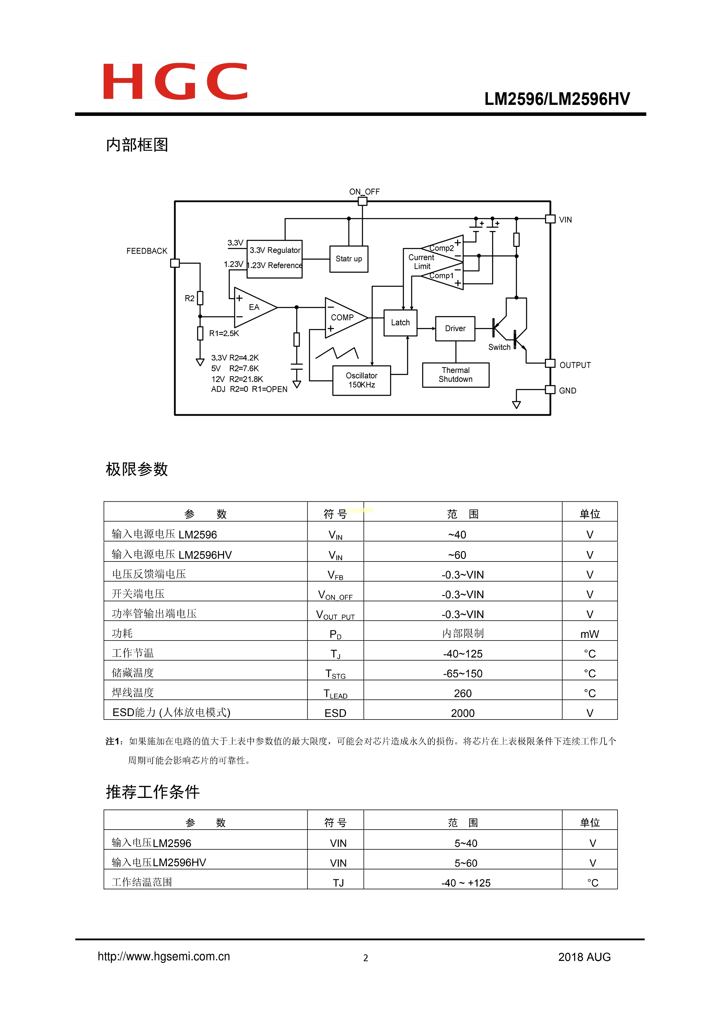 LM2596T-ADJ数据手册TO-220封装HGC(华冠)PDF规格书,中英文下载
