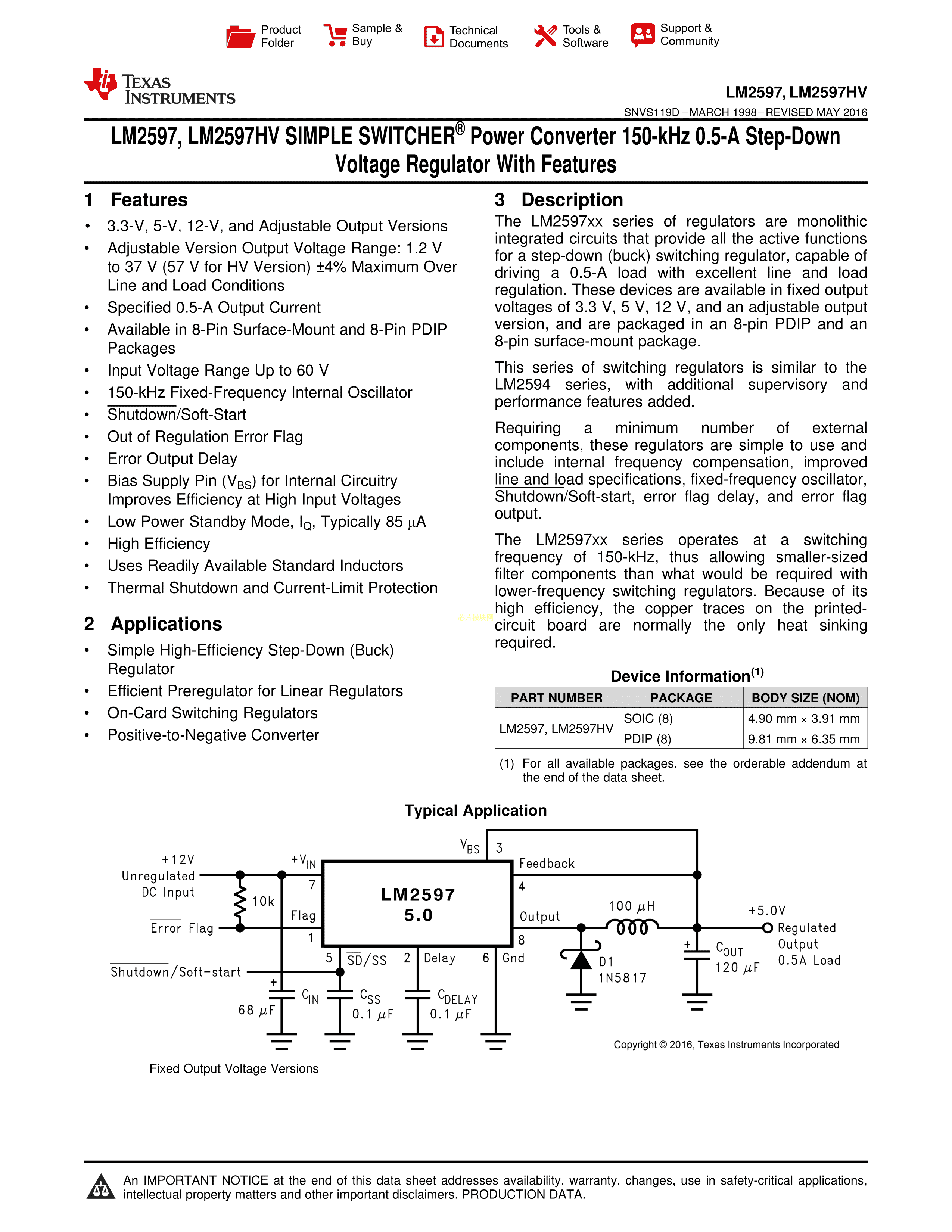 LM2597MX-ADJ-NOPB数据手册SOIC-8_150mil封装TI(德州仪器)PDF规格书