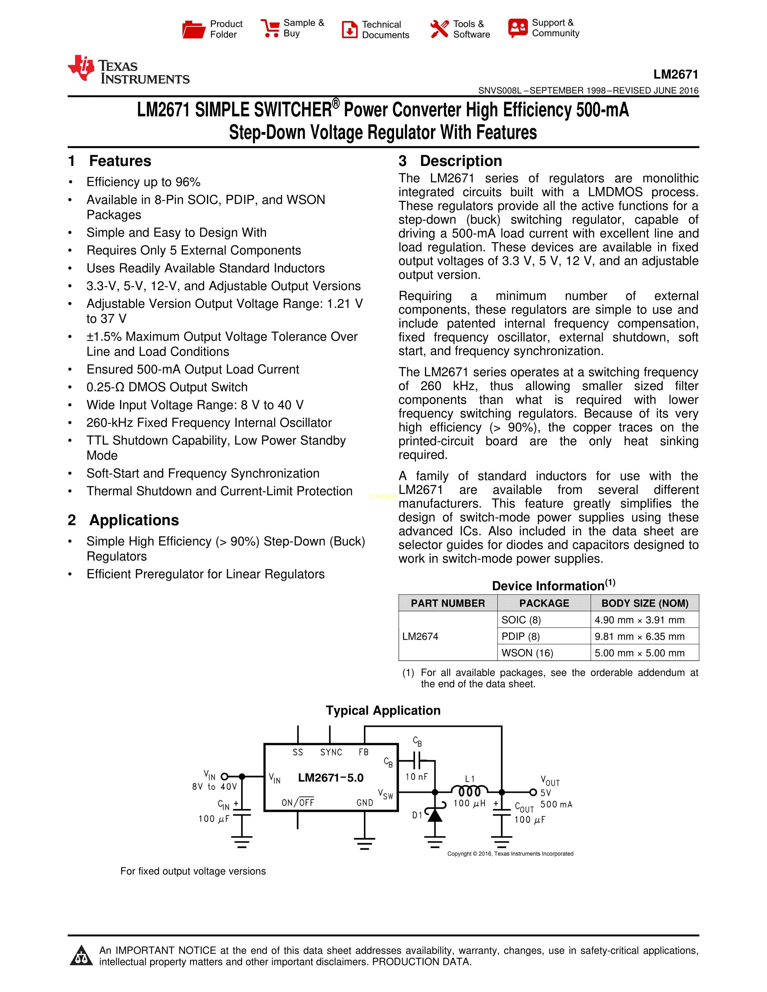 LM2671M-3.3-NOPB数据手册SOIC-8_150mil封装TI(德州仪器)PDF规格书,