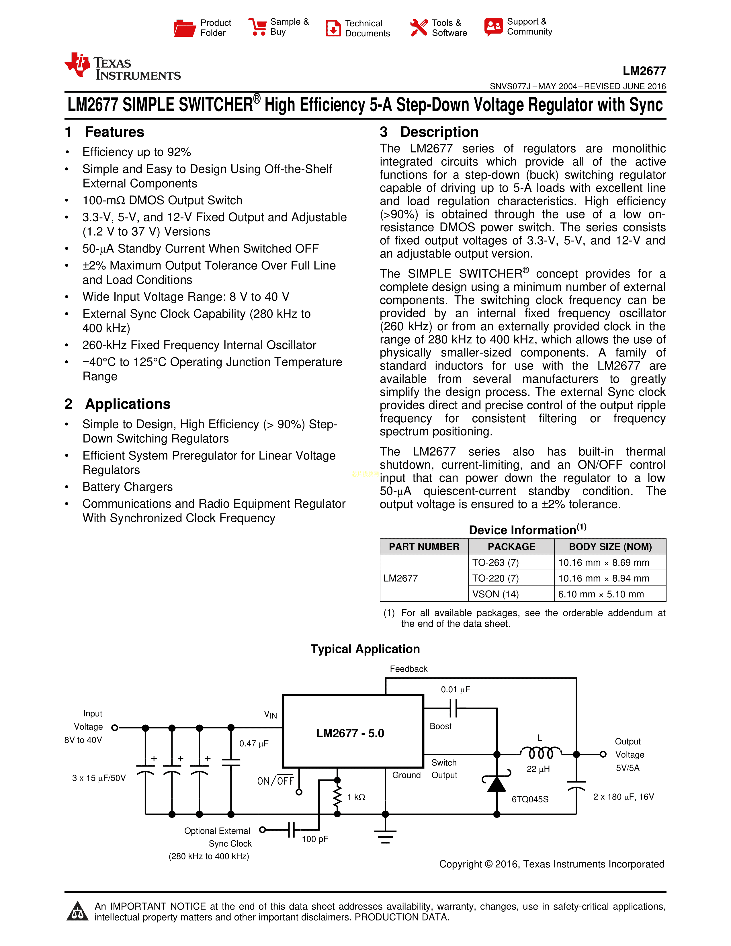 LM2677T-12-NOPB数据手册TO-220-7封装TI(德州仪器)PDF规格书,中英文下载