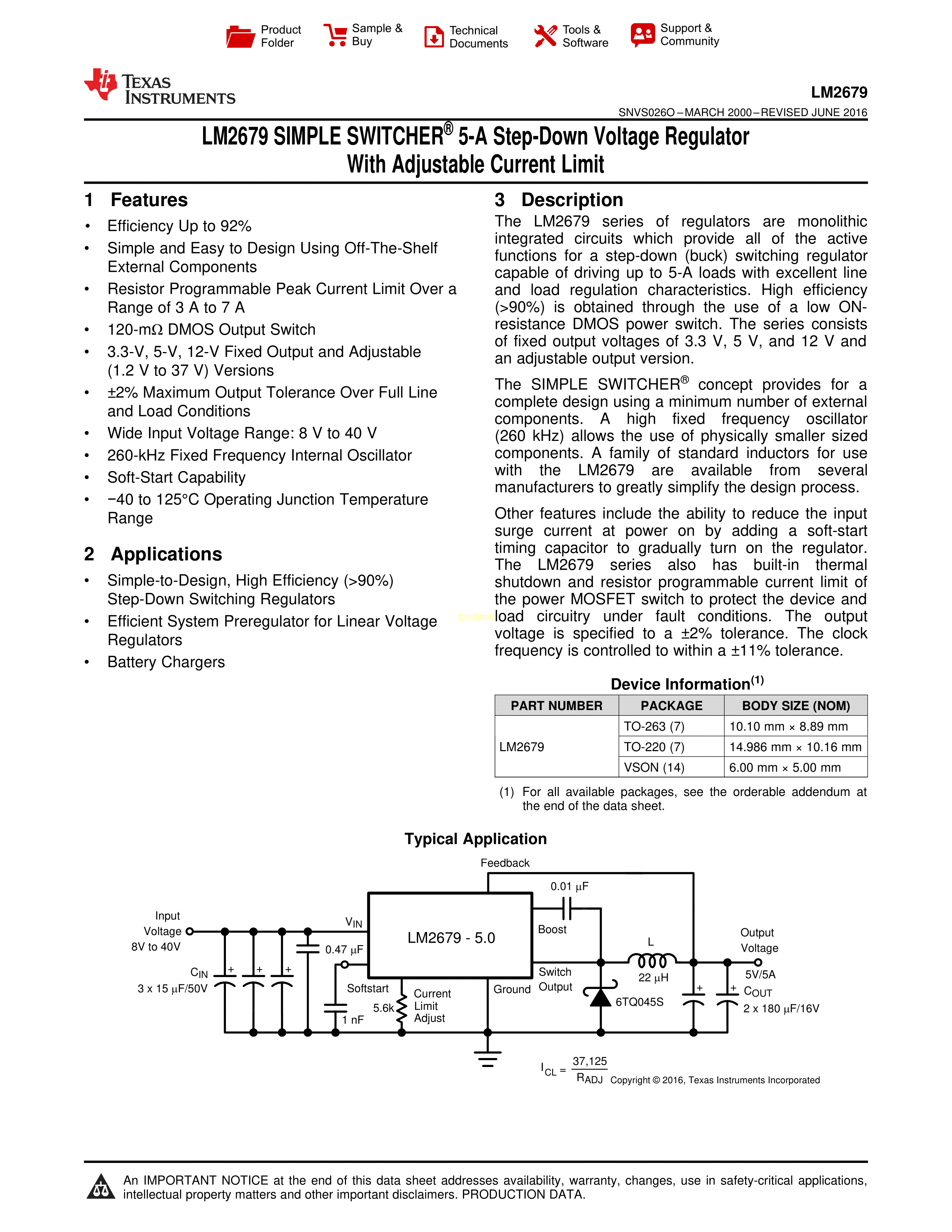 LM2679S-ADJ-NOPB数据手册TO-263-7封装TI(德州仪器)PDF规格书,中英文下载