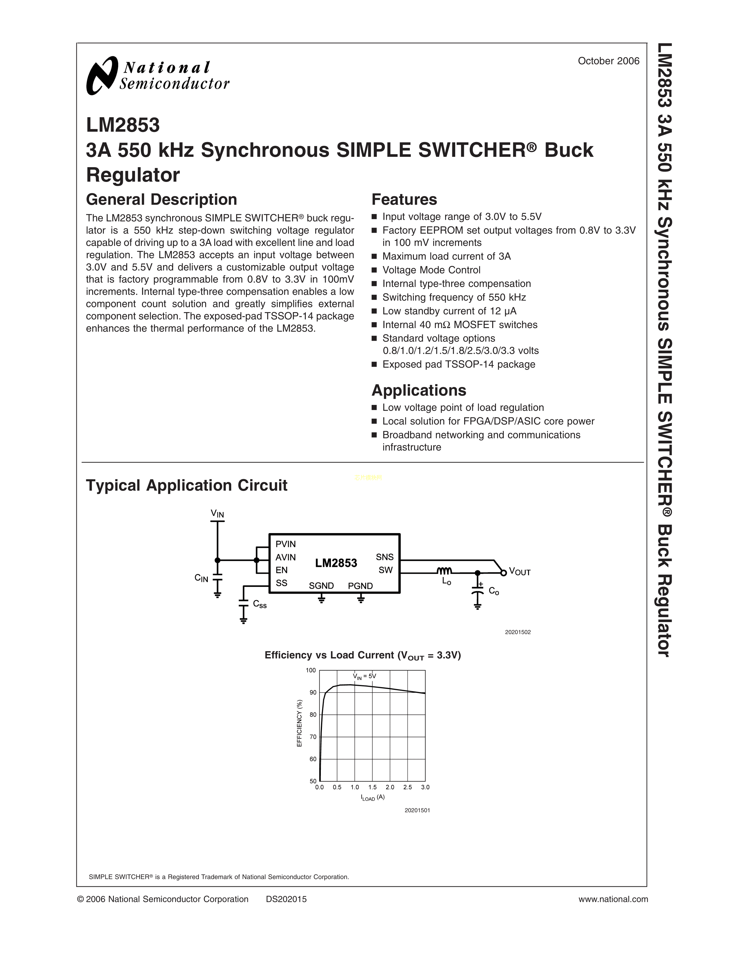 LM2853MH-3.3数据手册HTSSOP-14封装TI(德州仪器)PDF规格书,中英文下载