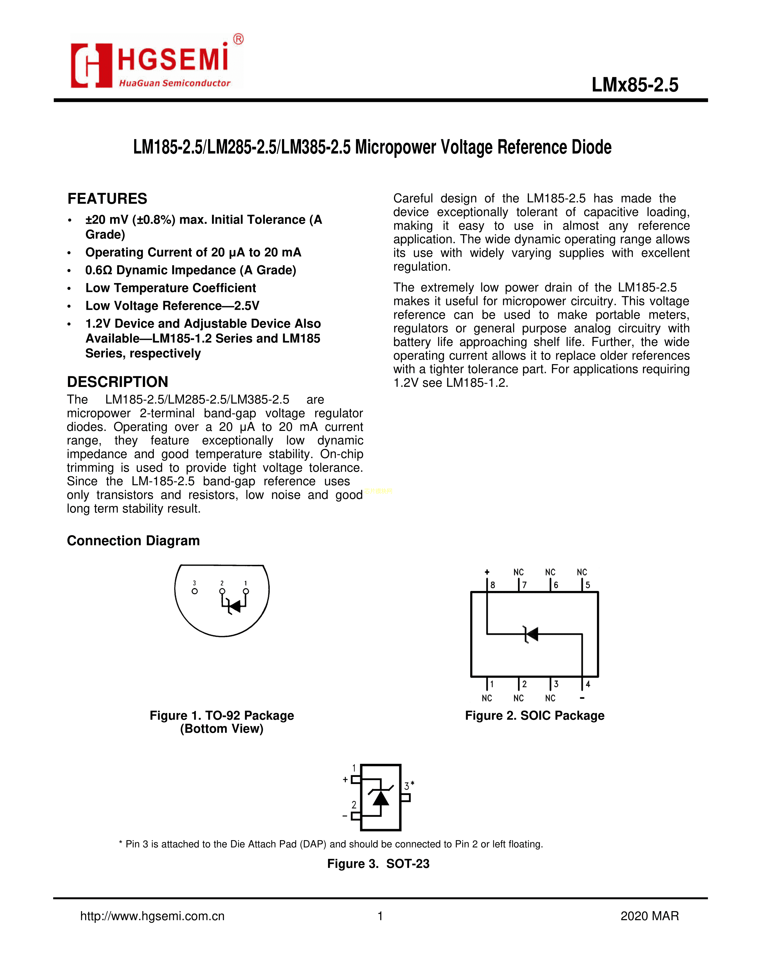 LM285M-2.5-TR数据手册SOIC-8封装HGSEMI(华冠)PDF规格书,中英文下载