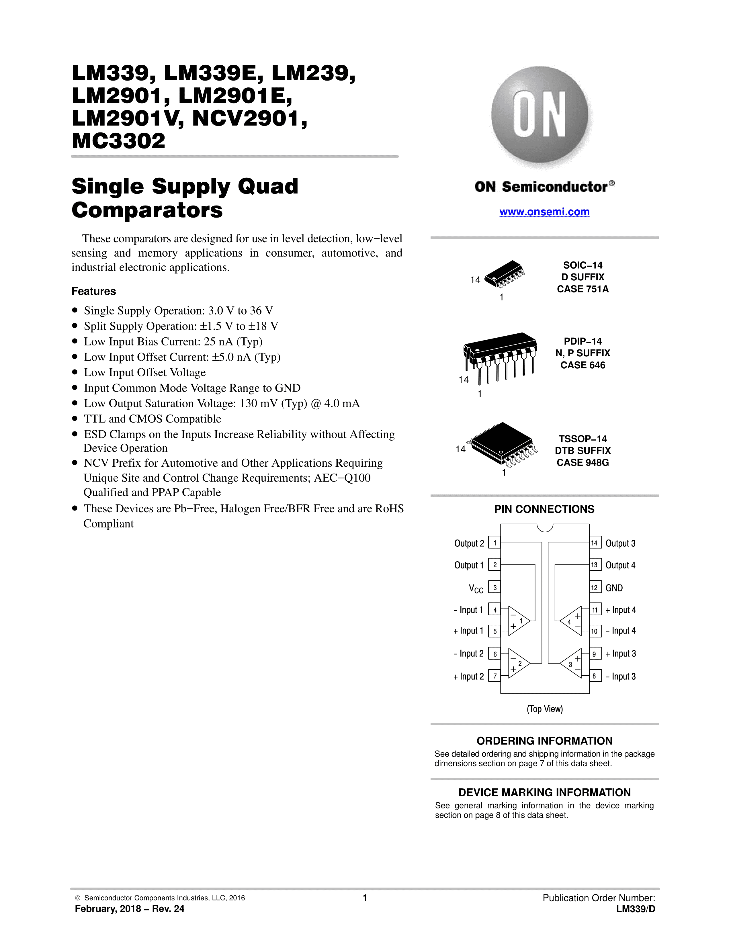 LM2901VDR2G数据手册SOIC-14_150mil封装onsemi(安森美)PDF规格书,中