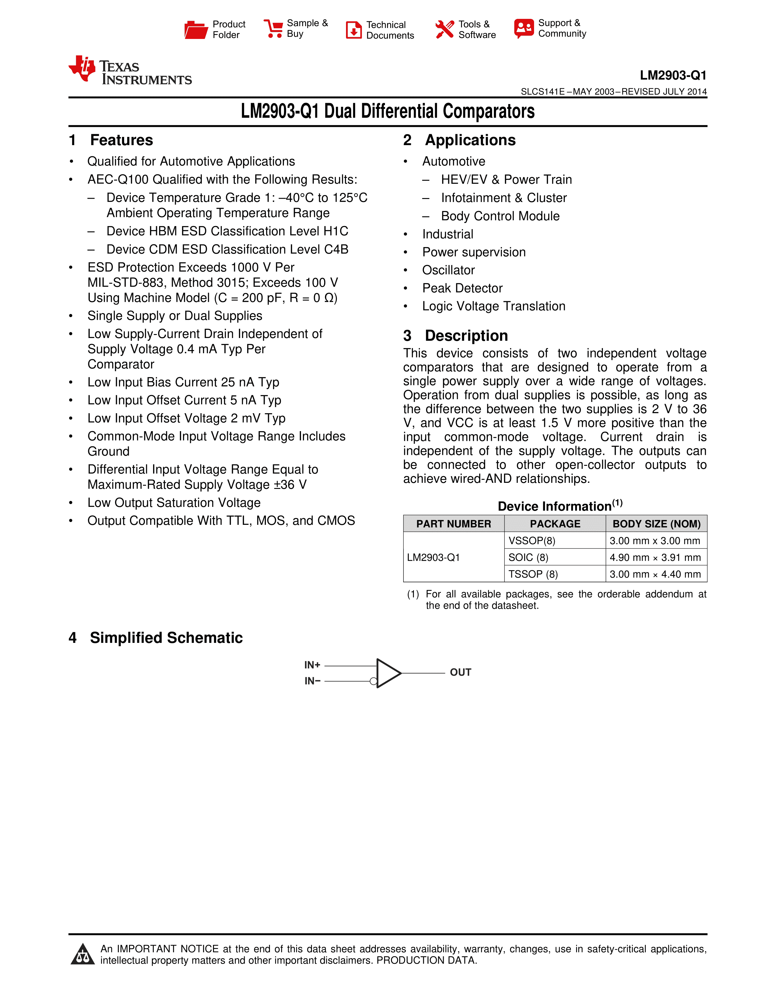 LM2903AVQPWRG4Q1数据手册TSSOP-8封装TI(德州仪器)PDF规格书,中英文下载