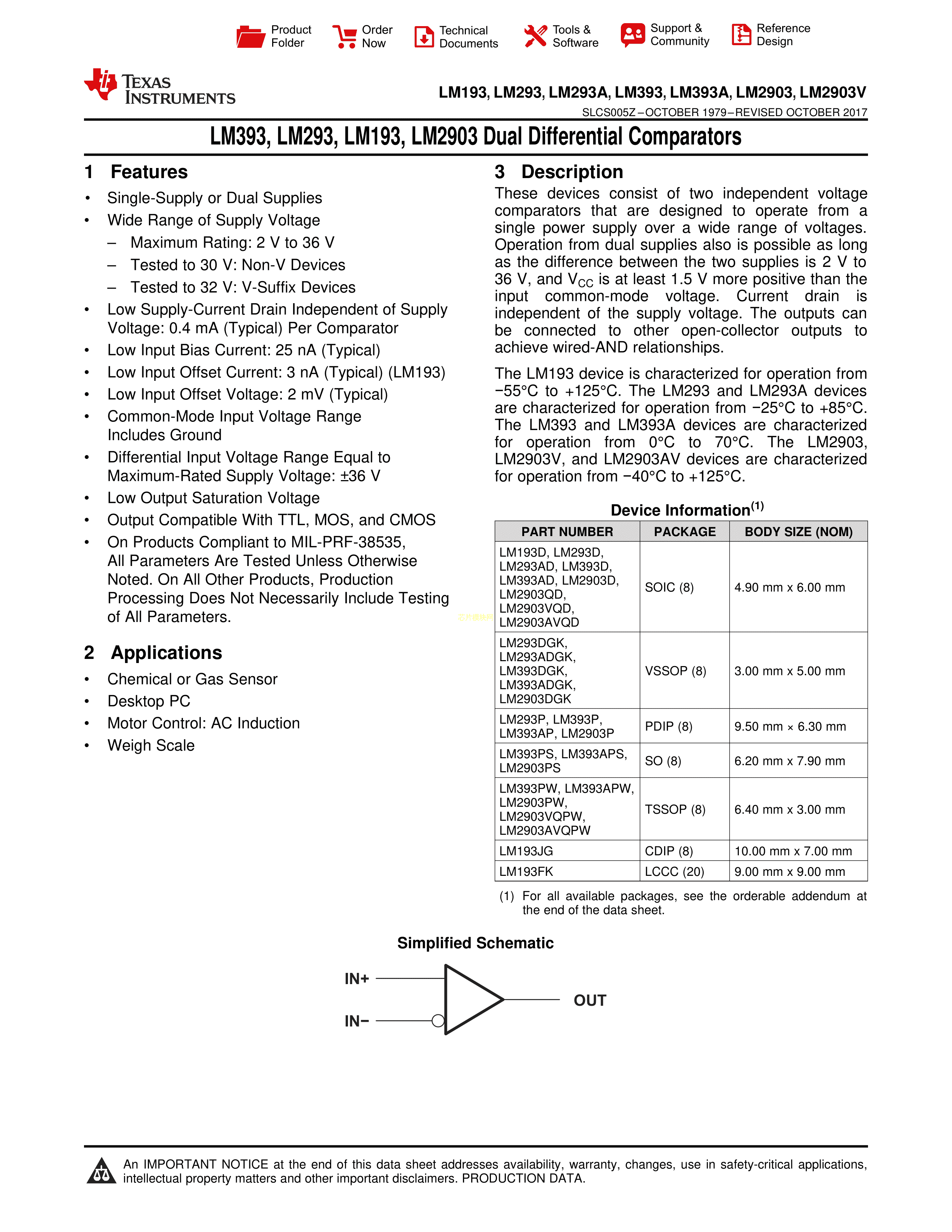 LM293D数据手册SOIC-8封装TI(德州仪器)PDF规格书,中英文下载