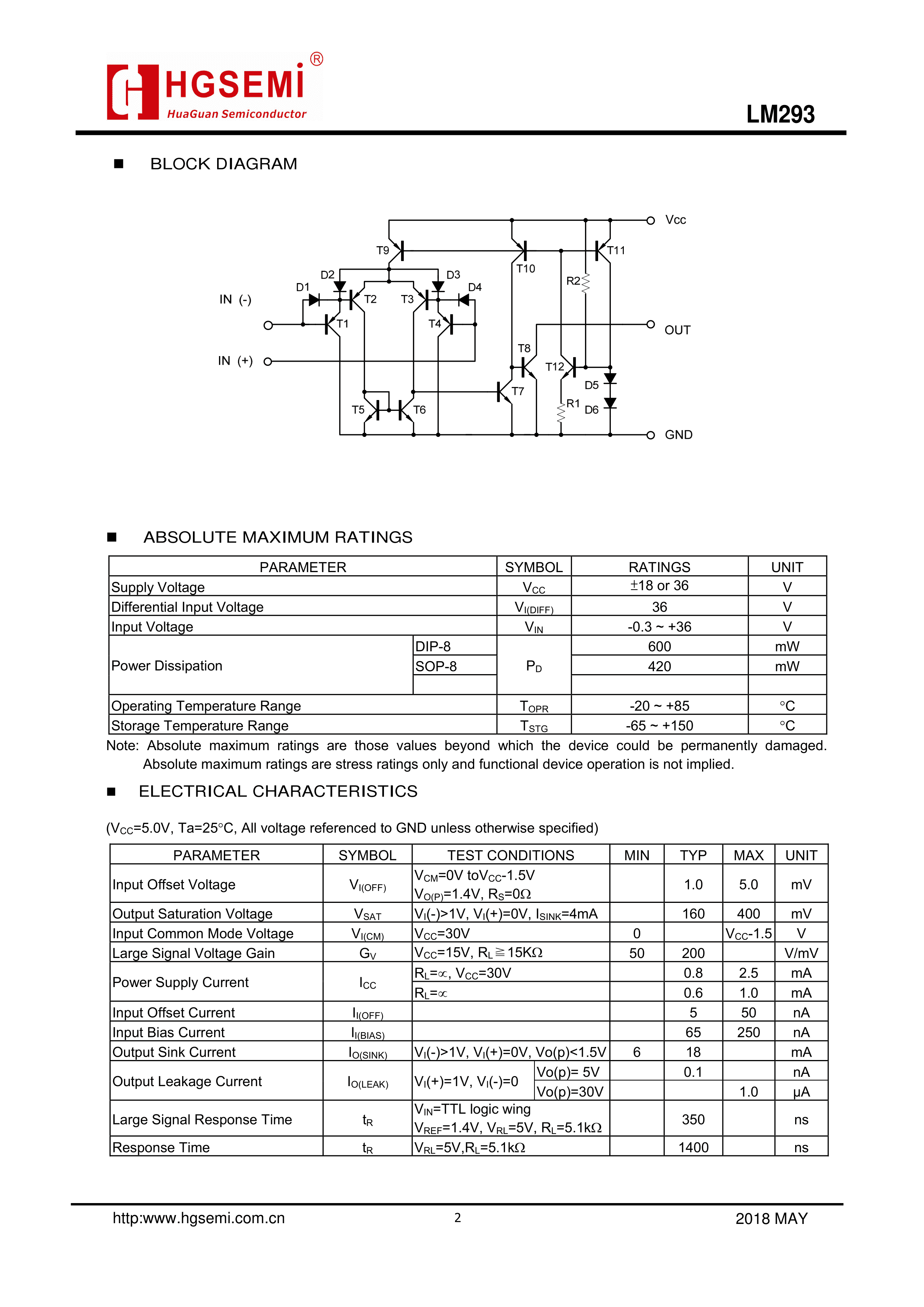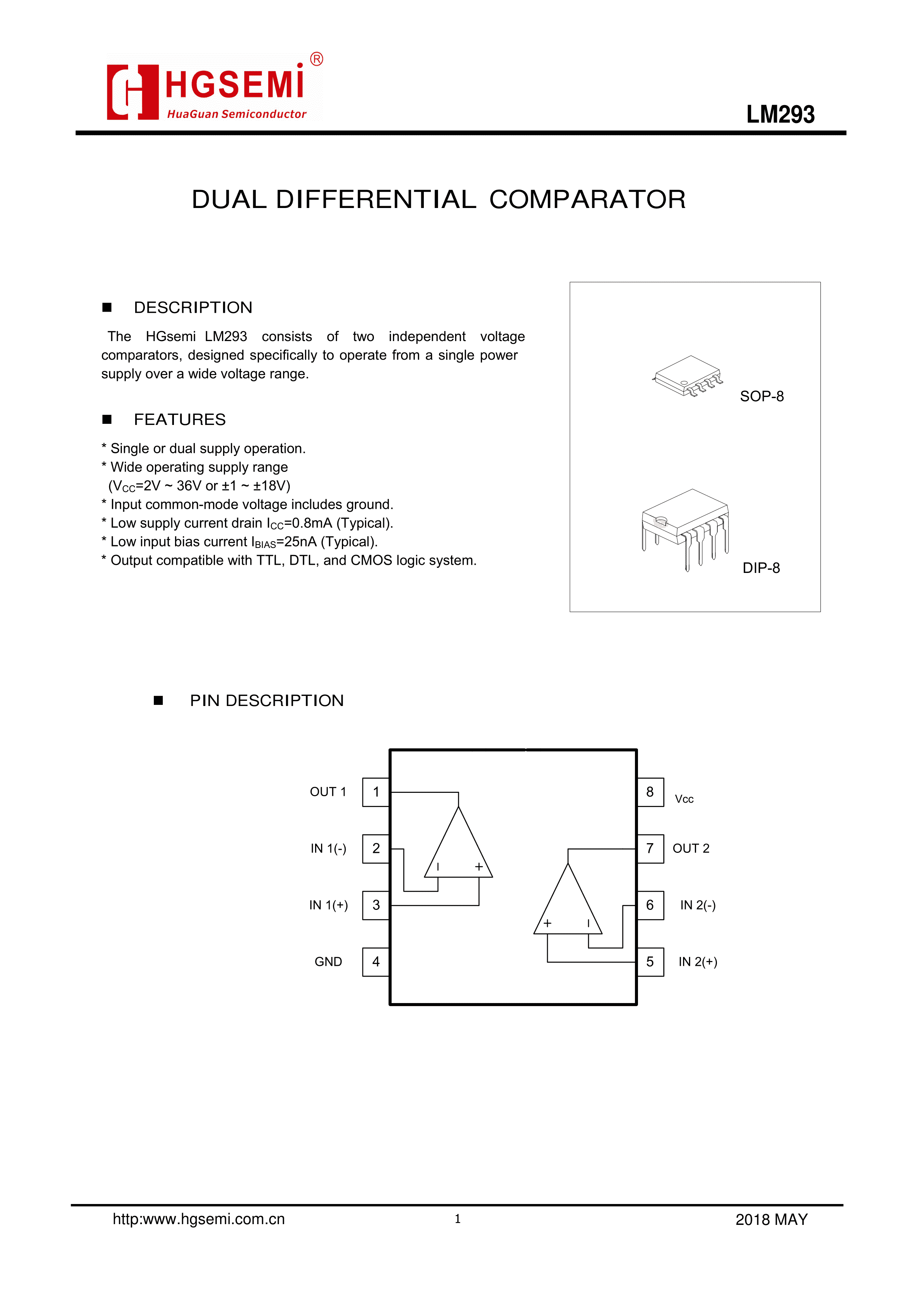 LM293M-TR数据手册SOP-8封装HGSEMI(华冠)PDF规格书,中英文下载