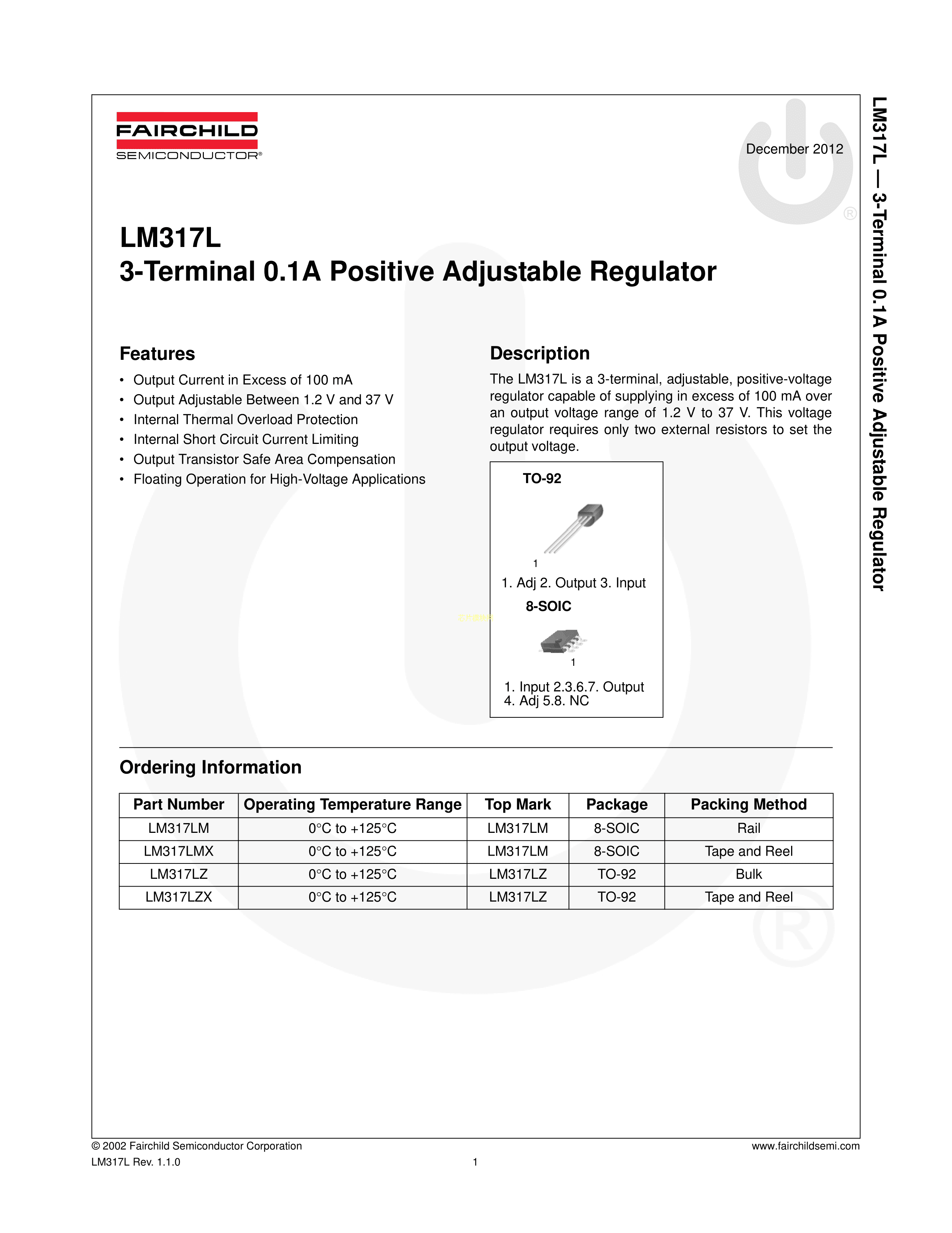 LM317LM数据手册SOIC-8_150mil封装onsemi(安森美)PDF规格书,中英文下载