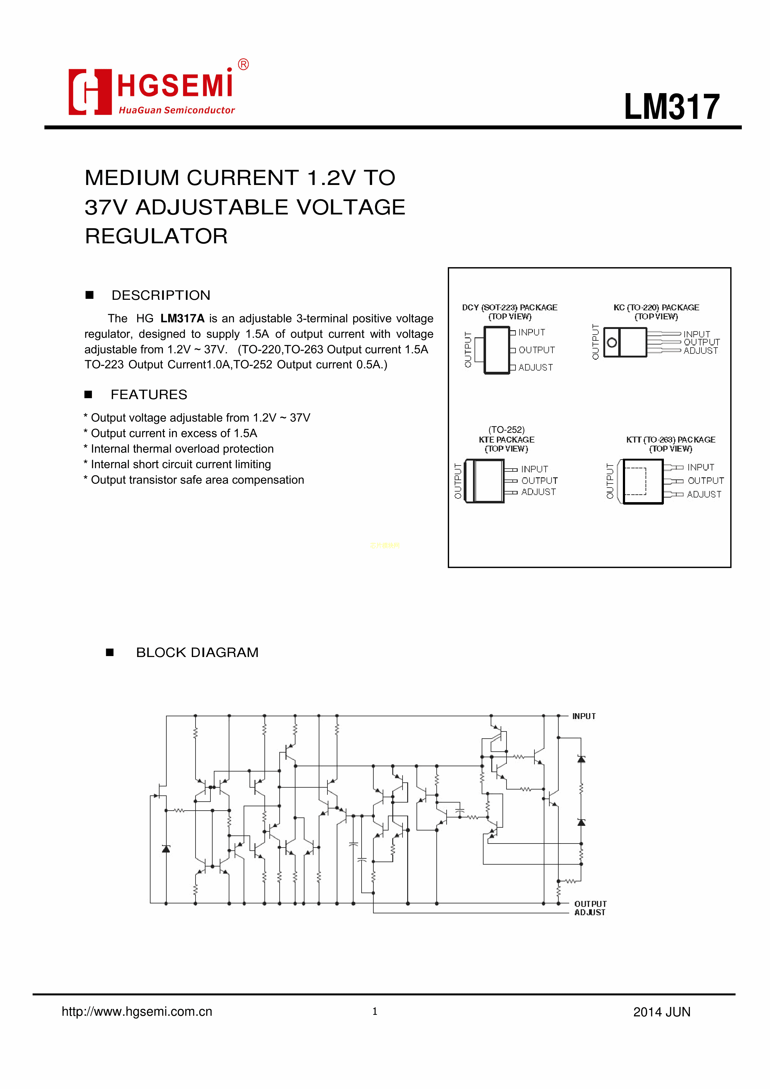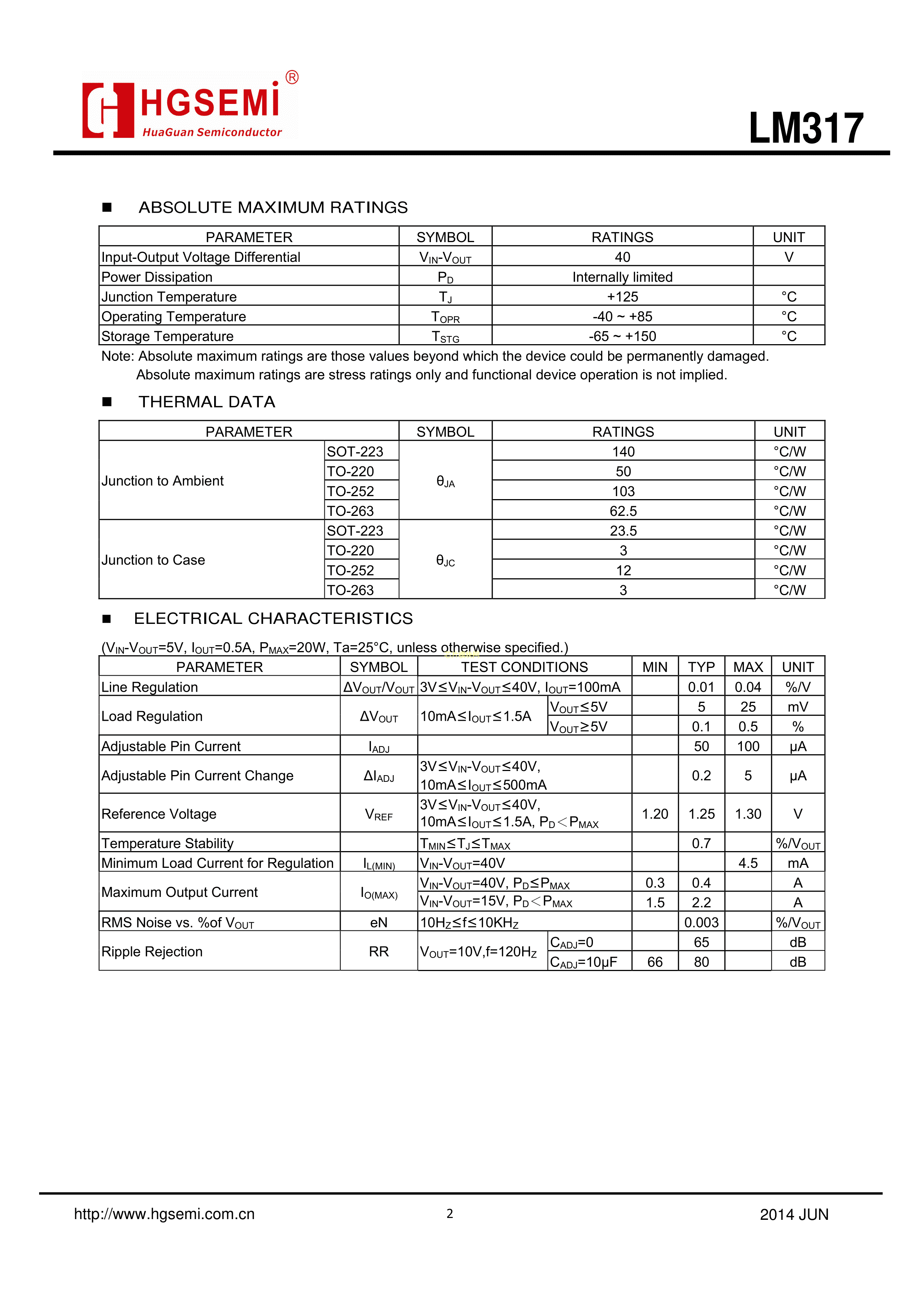 LM317T数据手册TO-220-3封装HGSEMI(华冠)PDF规格书,中英文下载