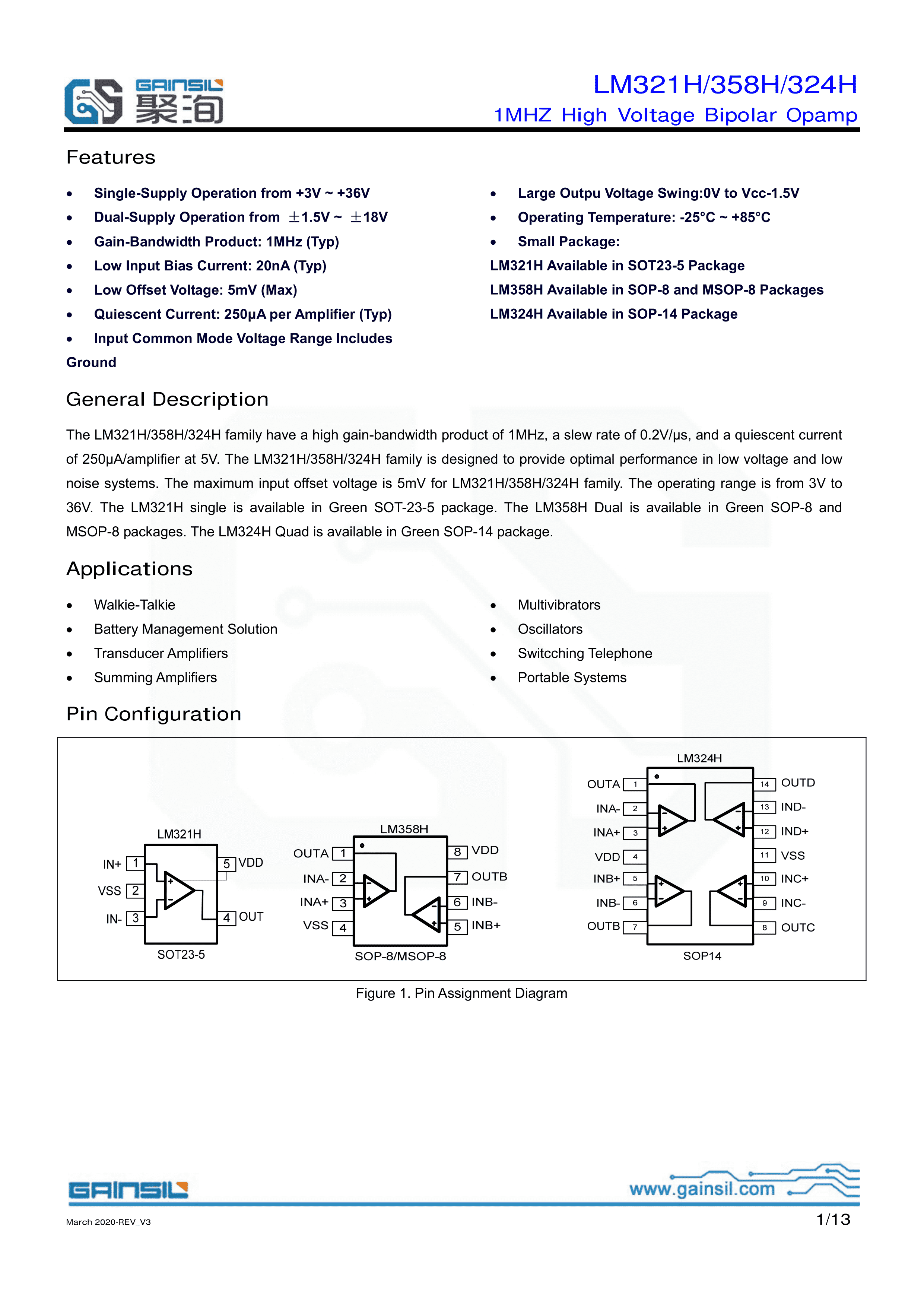 LM321H-TR数据手册SOT-23-5封装Gainsil(聚洵)PDF规格书,中英文下载