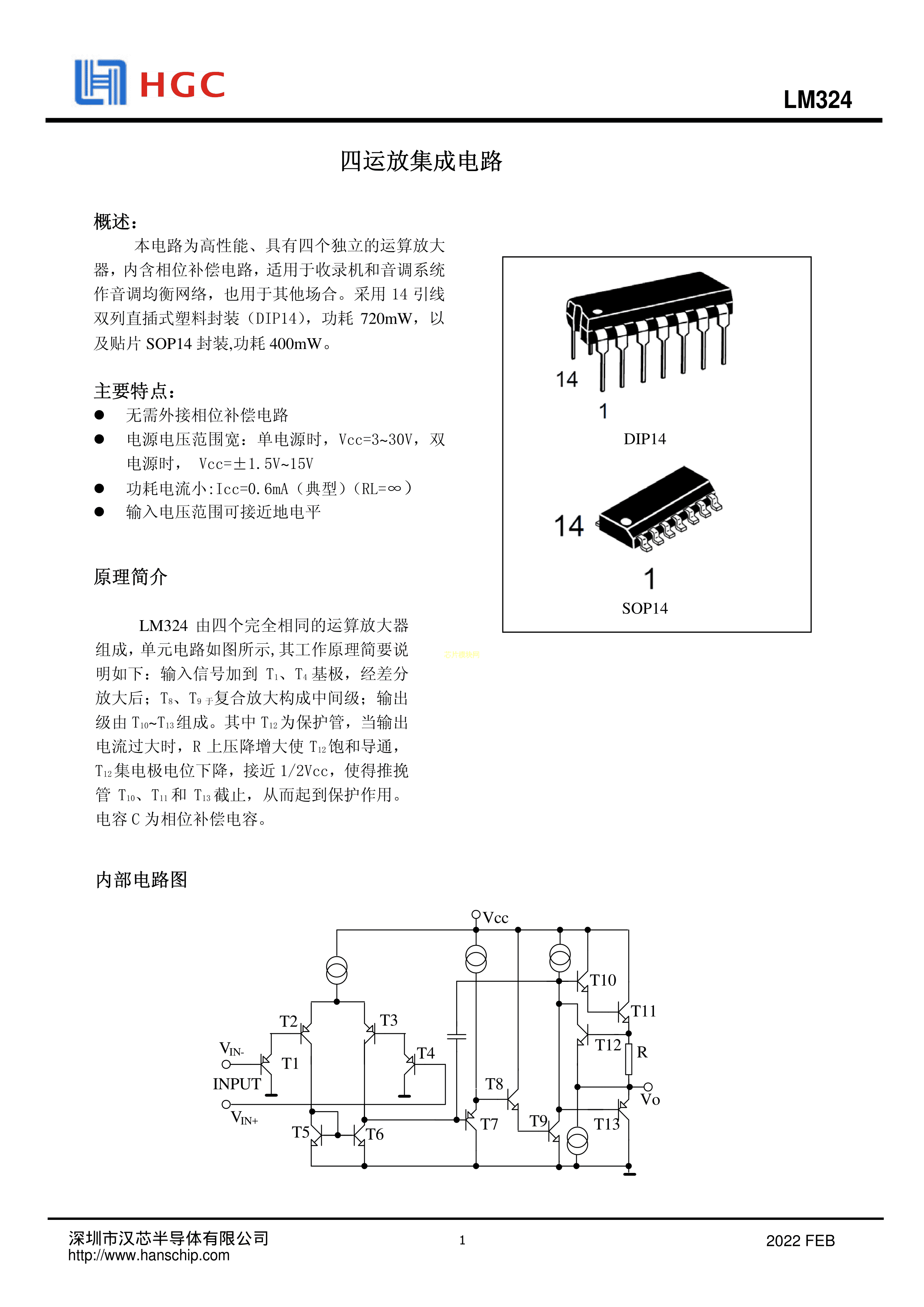 LM324CDRG数据手册SOP-14封装HGC(深圳汉芯)PDF规格书,中英文下载