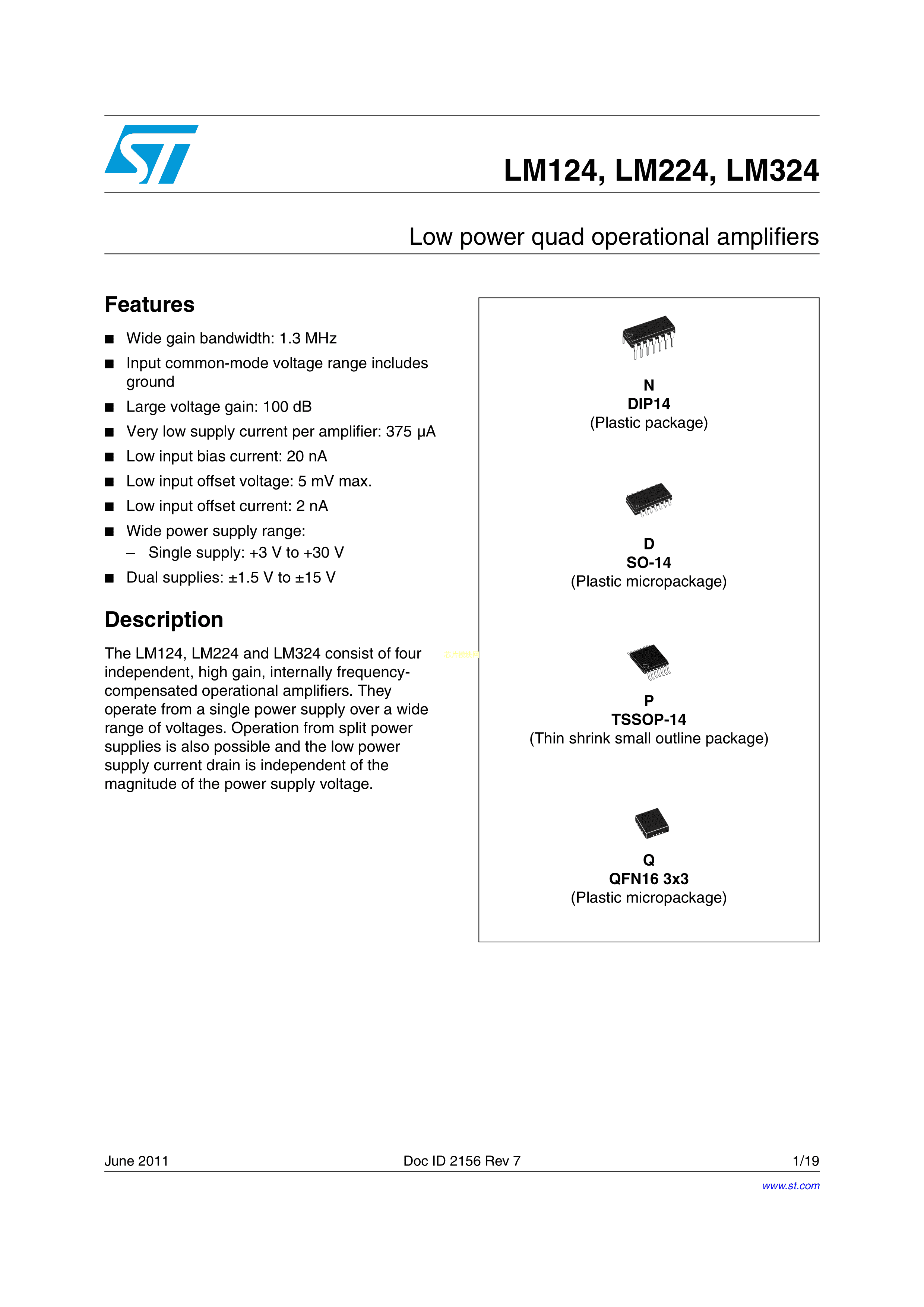 LM324DT数据手册SOIC-14_150mil封装ST(意法半导体)PDF规格书,中英文下载