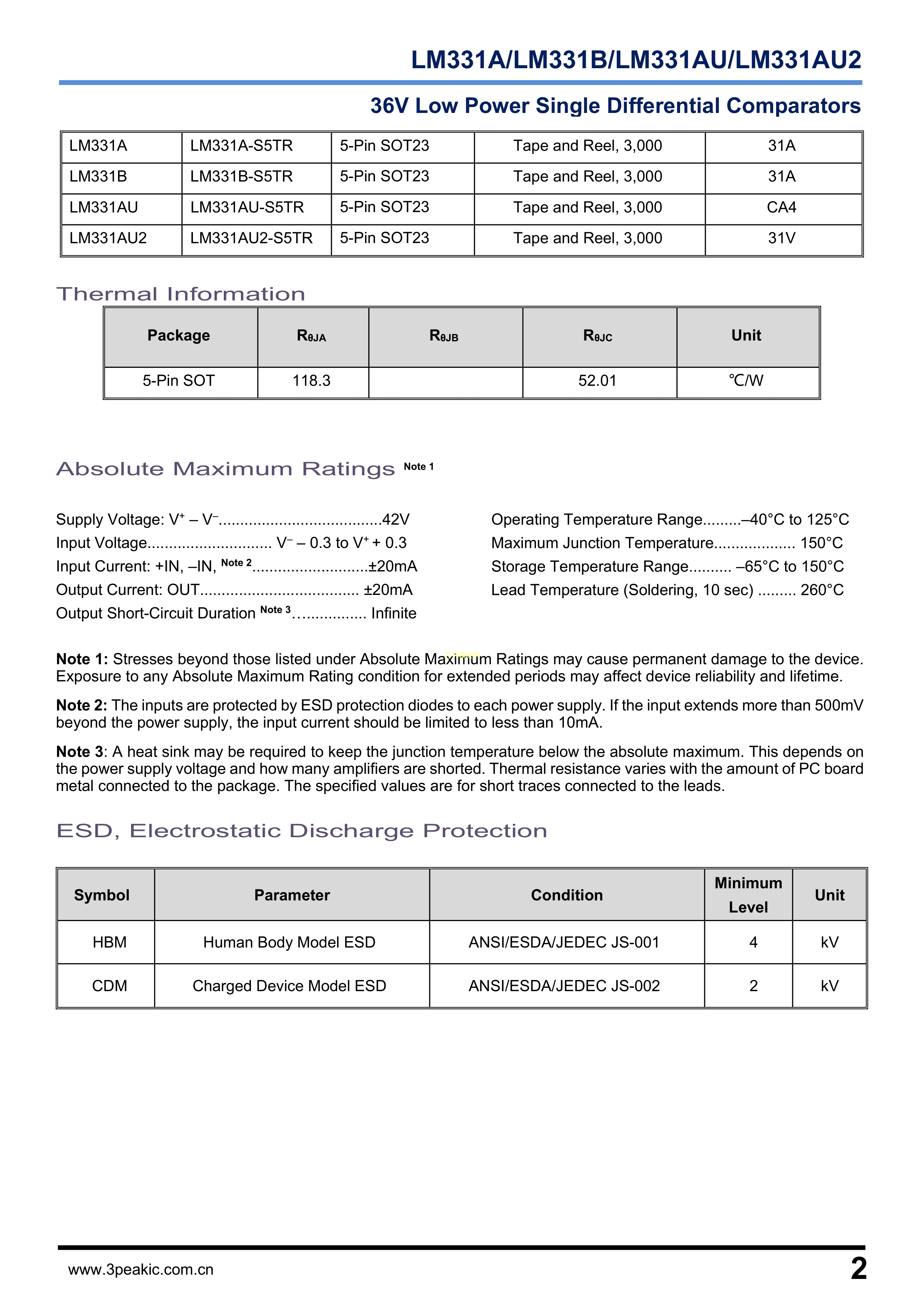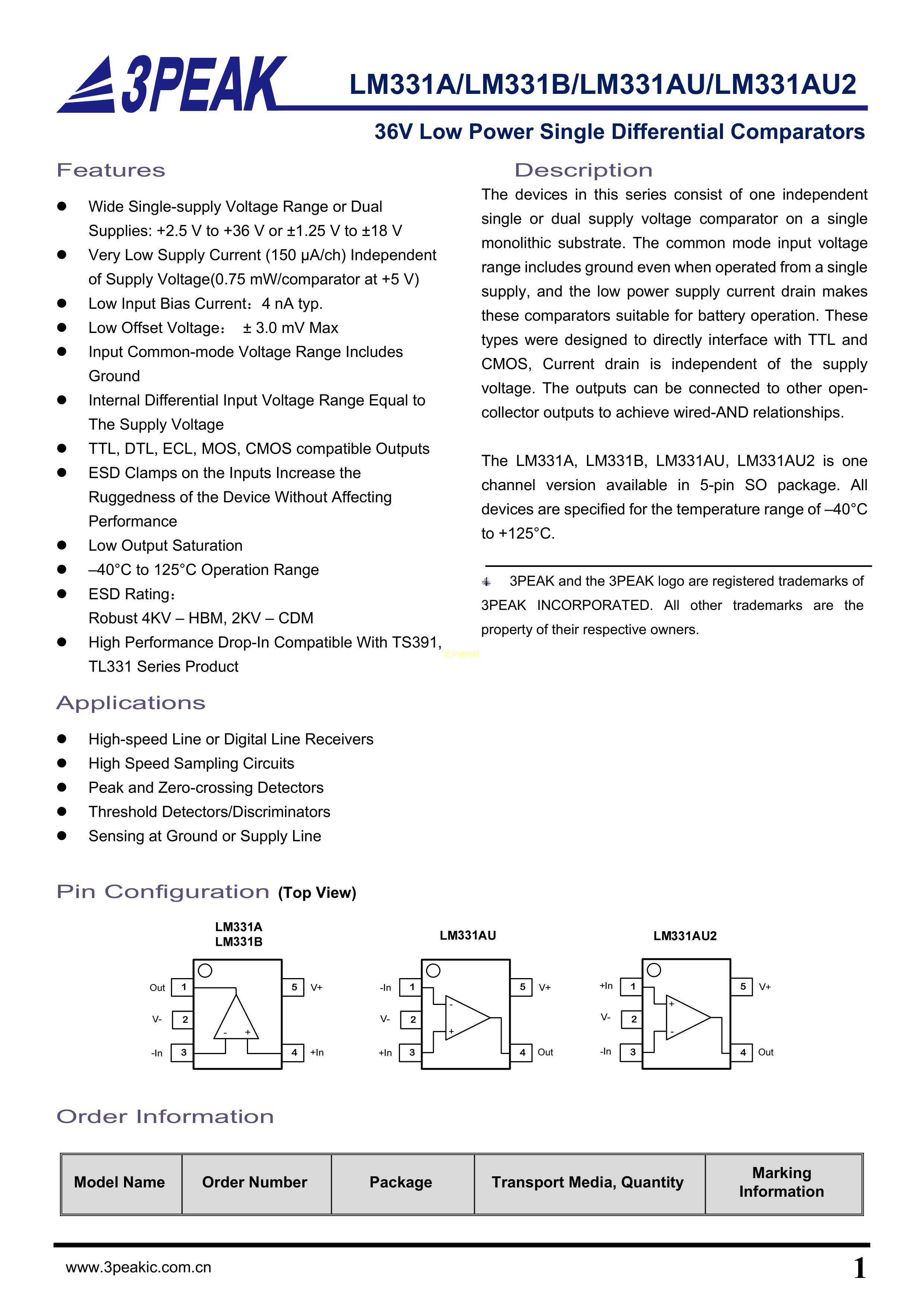 LM331AU-S5TR数据手册SOT23-5封装3PEAKPDF规格书,中英文下载