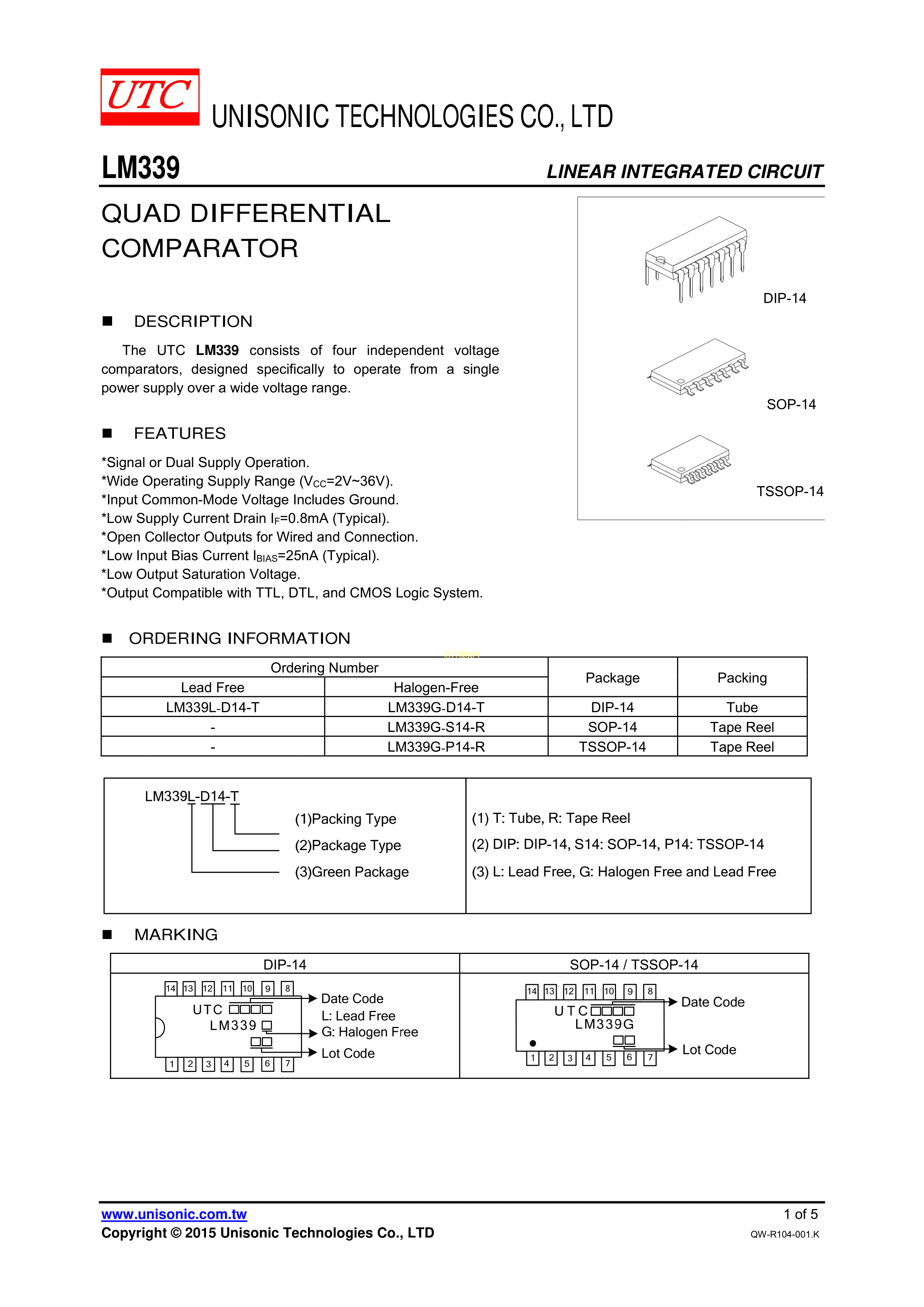 LM339G-S14-R数据手册SOP-14_150mil封装UTC(友顺)PDF规格书,中英文下载
