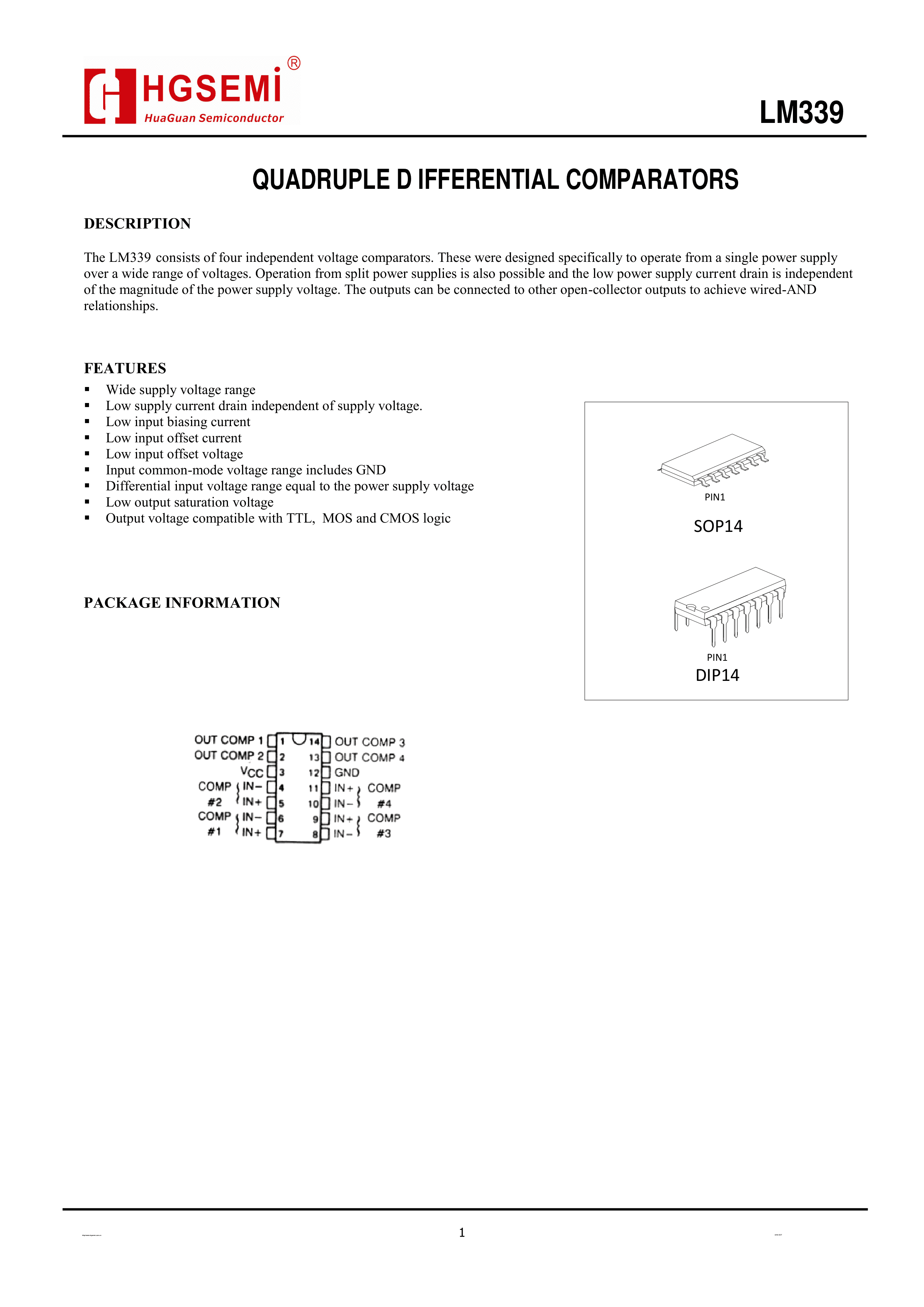 LM339M-TR数据手册SOP-14封装HGSEMI(华冠)PDF规格书,中英文下载