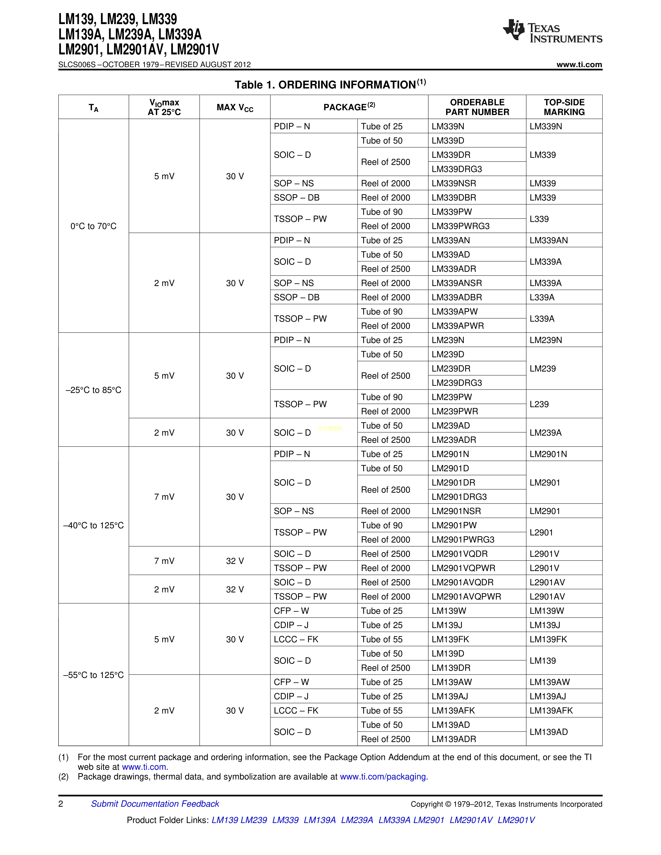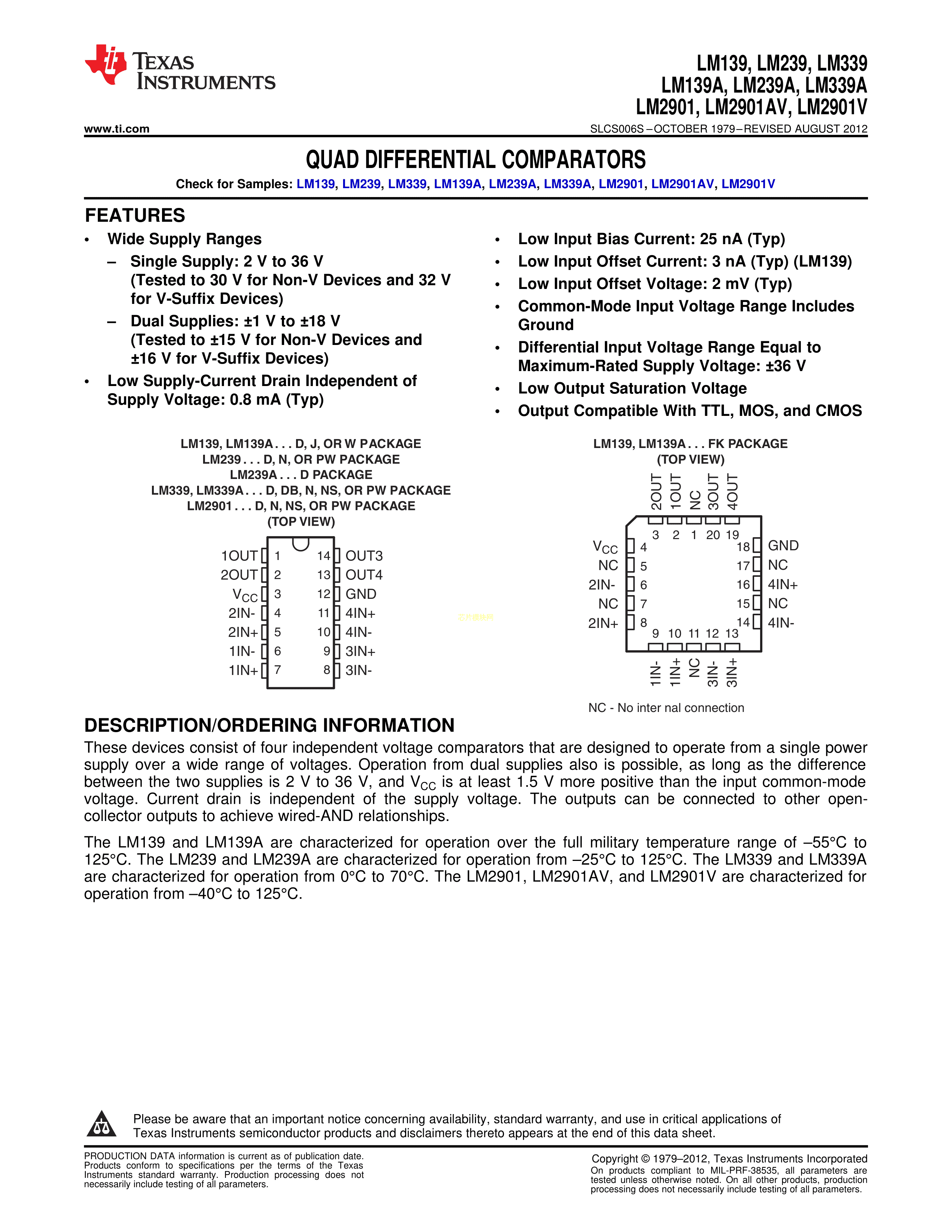 LM339N数据手册DIP-14封装TI(德州仪器)PDF规格书,中英文下载