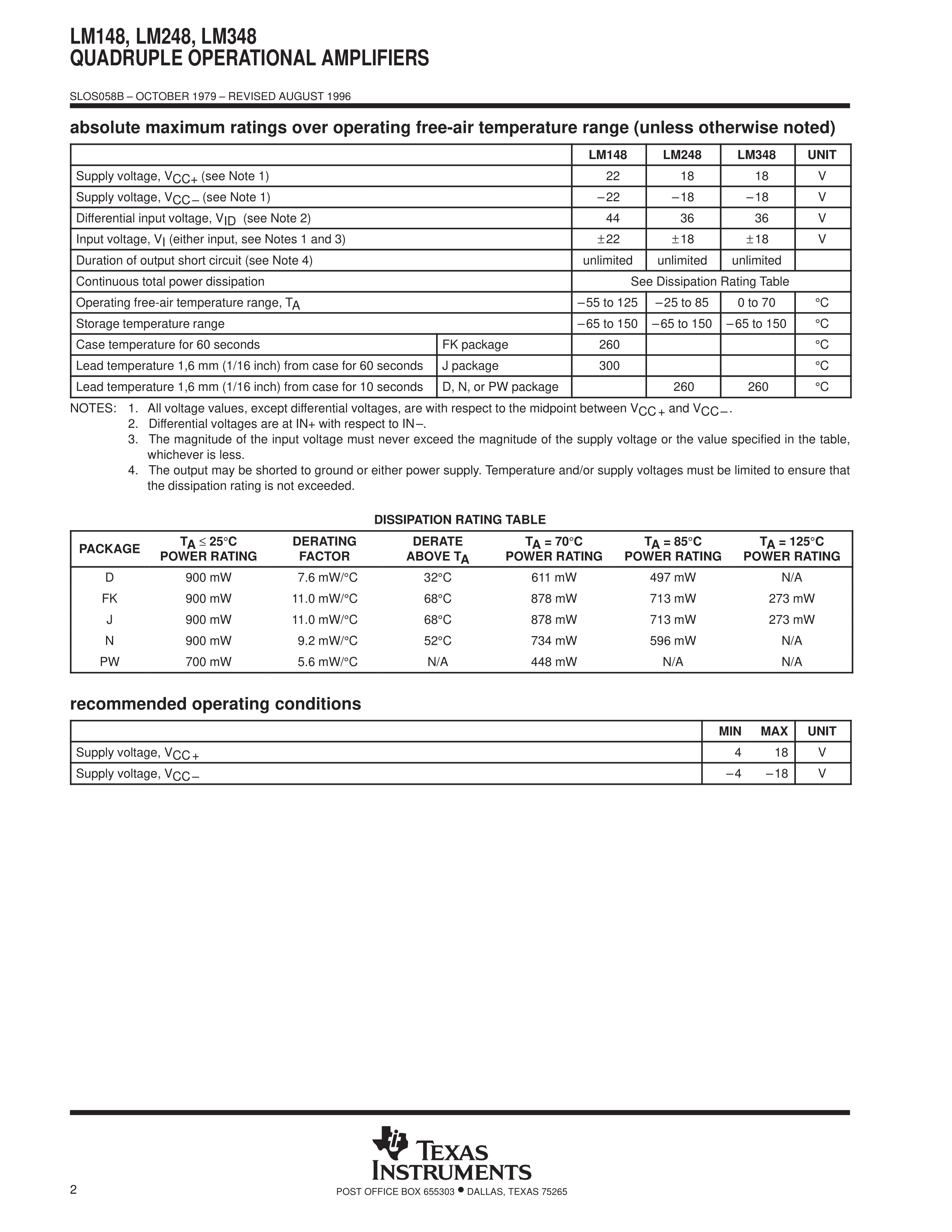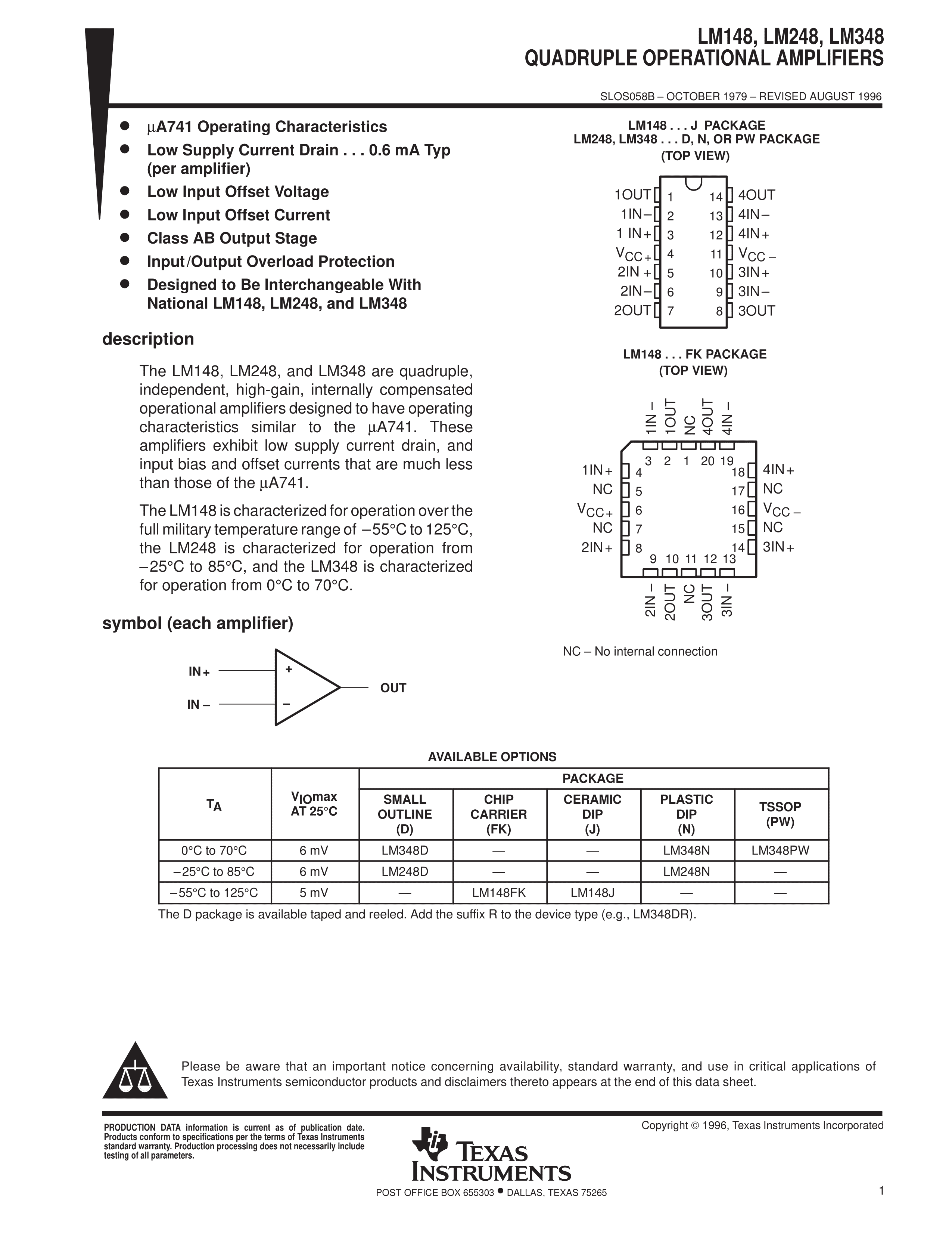 LM348N数据手册DIP-14封装TI(德州仪器)PDF规格书,中英文下载