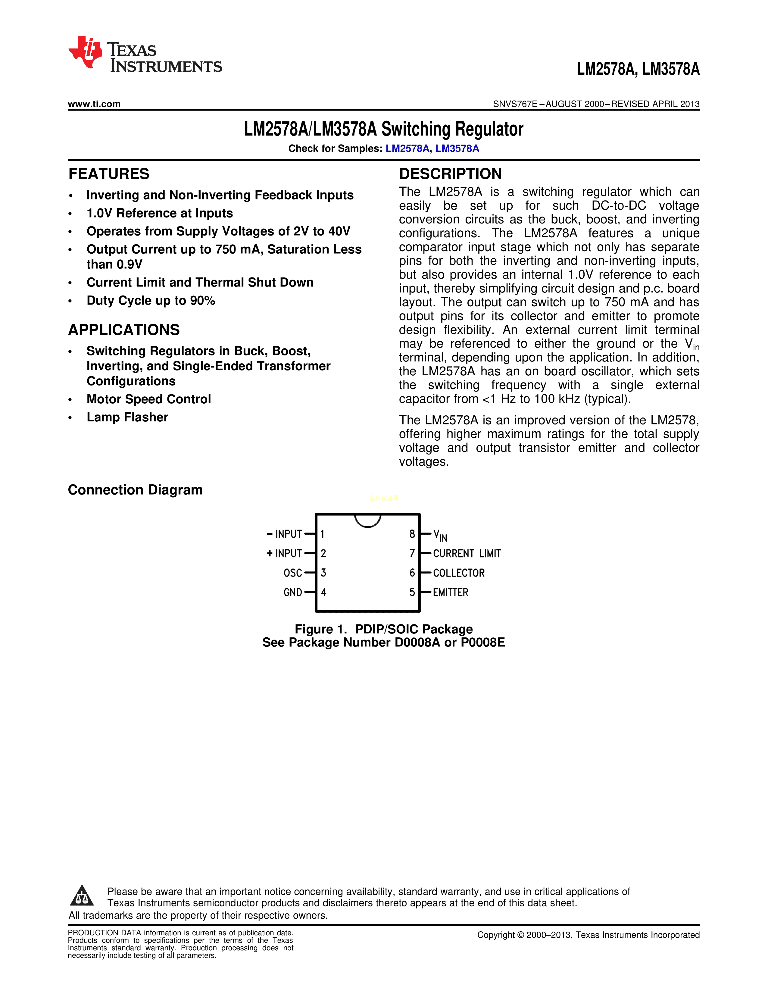 LM3578AN-NOPB数据手册DIP-8封装TI(德州仪器)PDF规格书,中英文下载