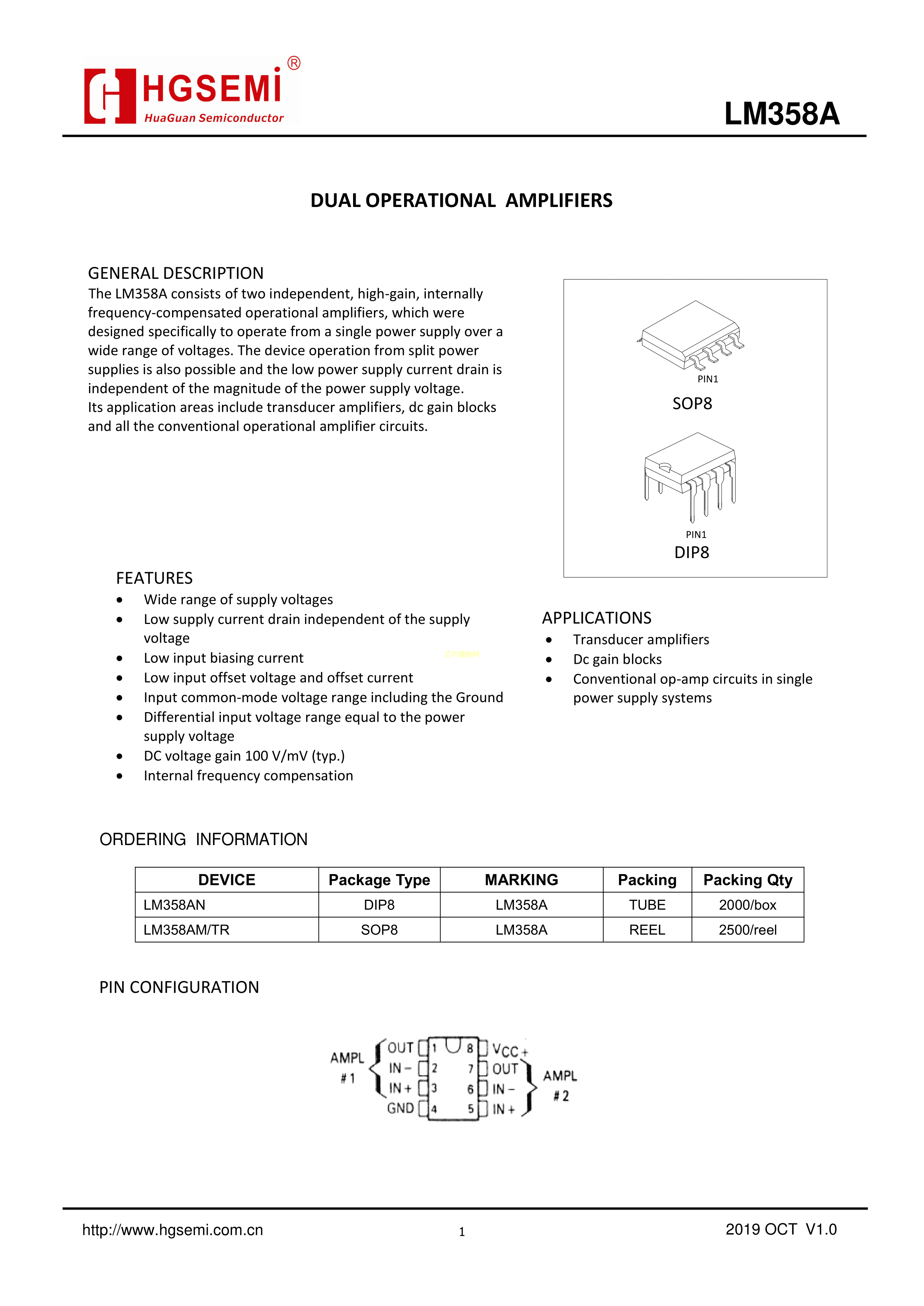 LM358AM-TR数据手册SOP-8封装HGSEMI(华冠)PDF规格书,中英文下载