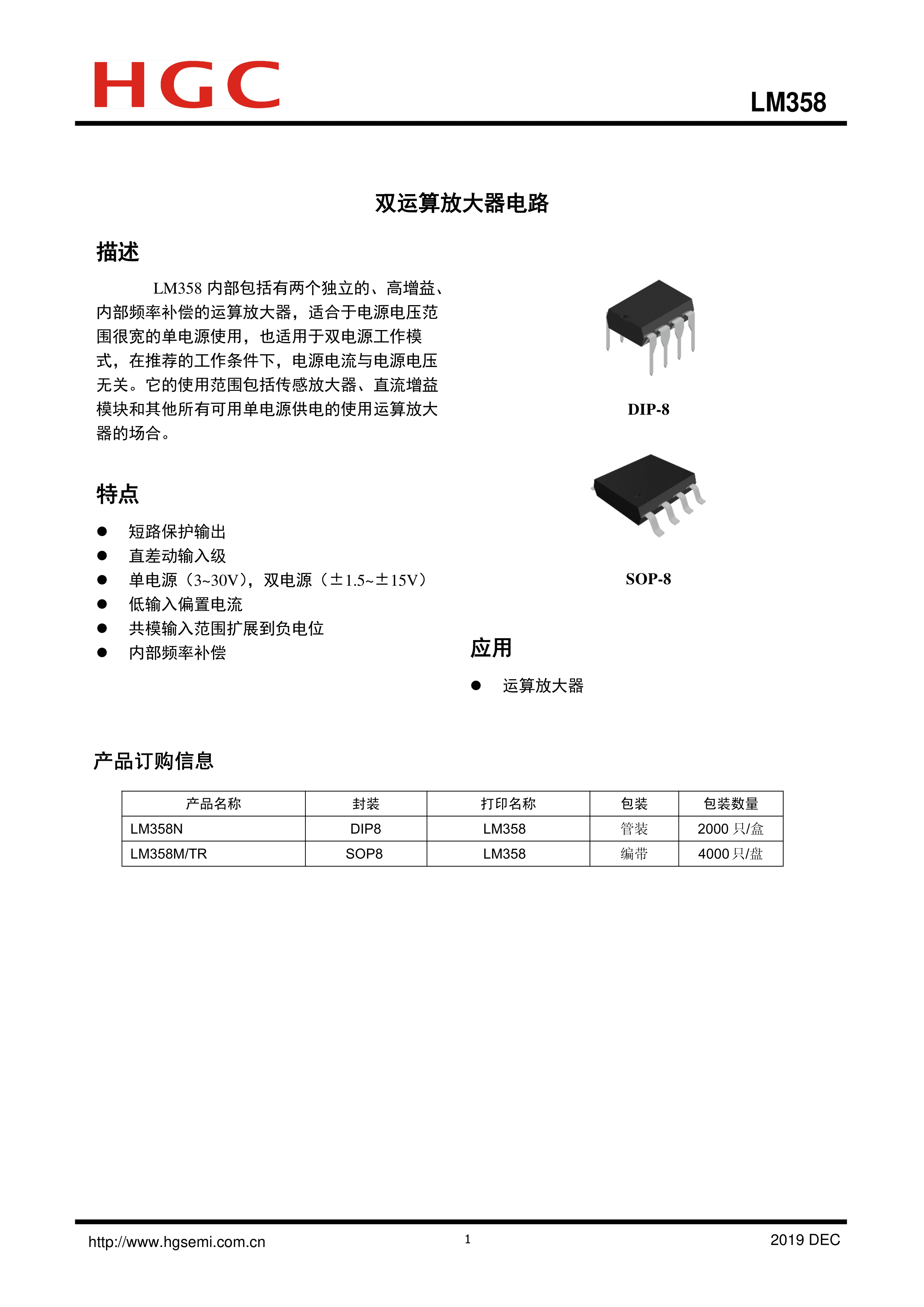 LM358M-TR数据手册SOP-8封装HGC(华冠)PDF规格书,中英文下载