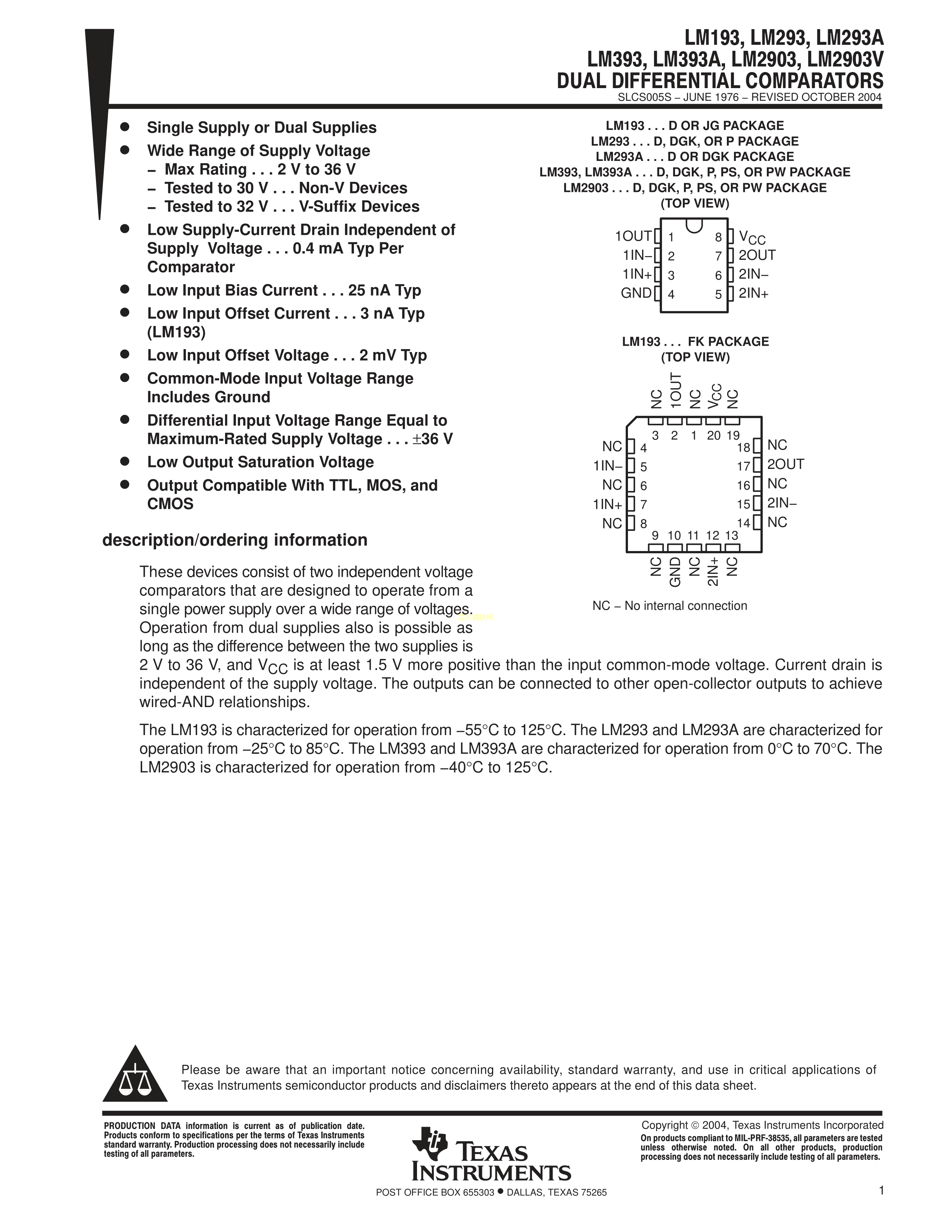 LM393P数据手册DIP-8封装TI(德州仪器)PDF规格书,中英文下载