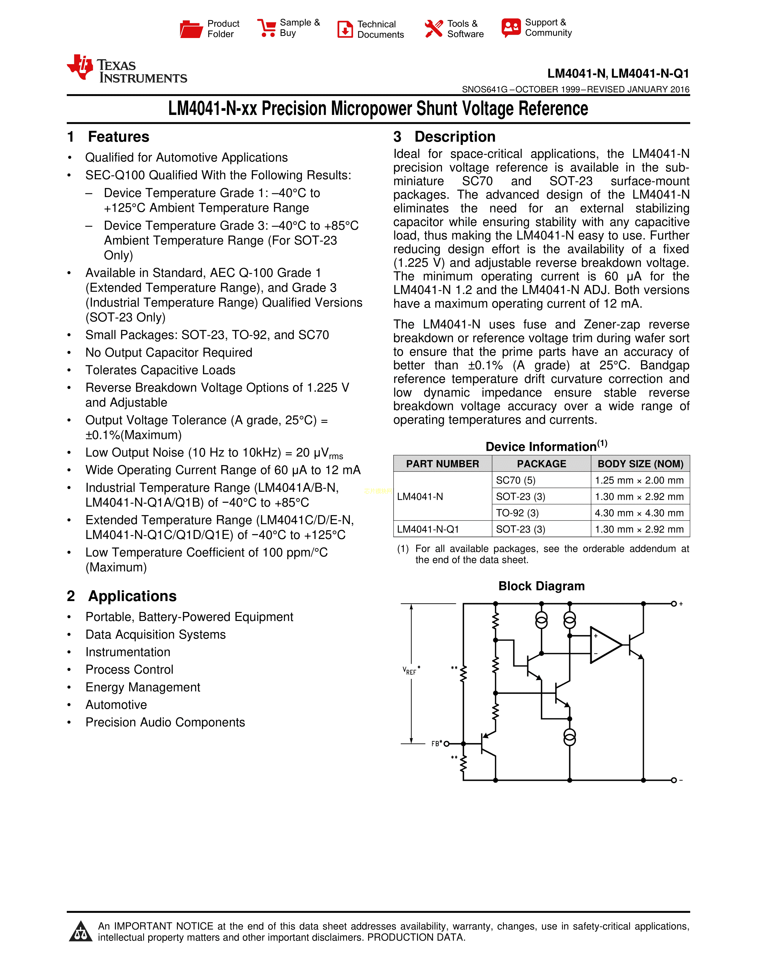 LM4041AIM3X-1.2-NOPB数据手册SOT-23-3封装TI(德州仪器)PDF规格书,中英文下载