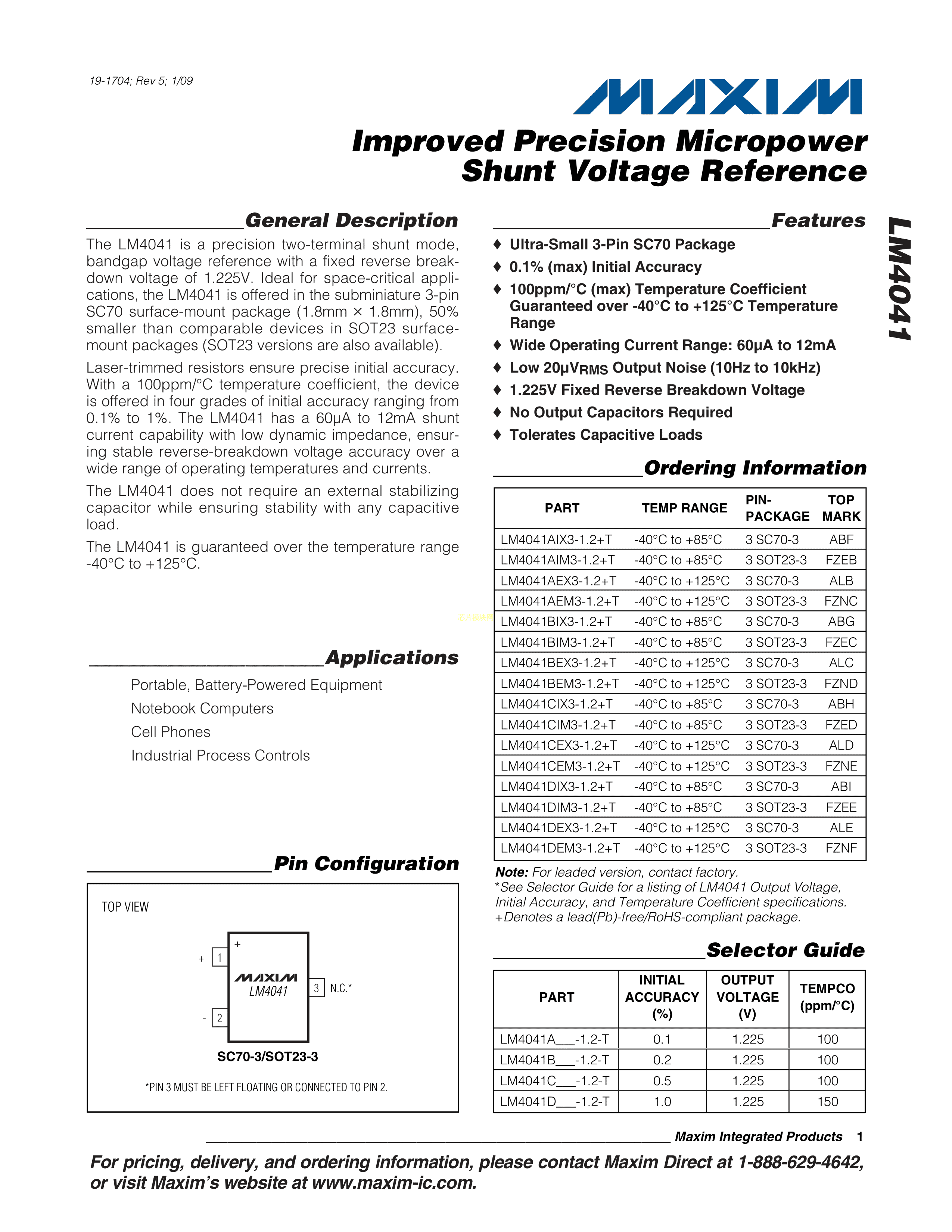 LM4041CIM3-1.2+T数据手册SOT-23-3封装MAXIM(美信)PDF规格书,中英文下