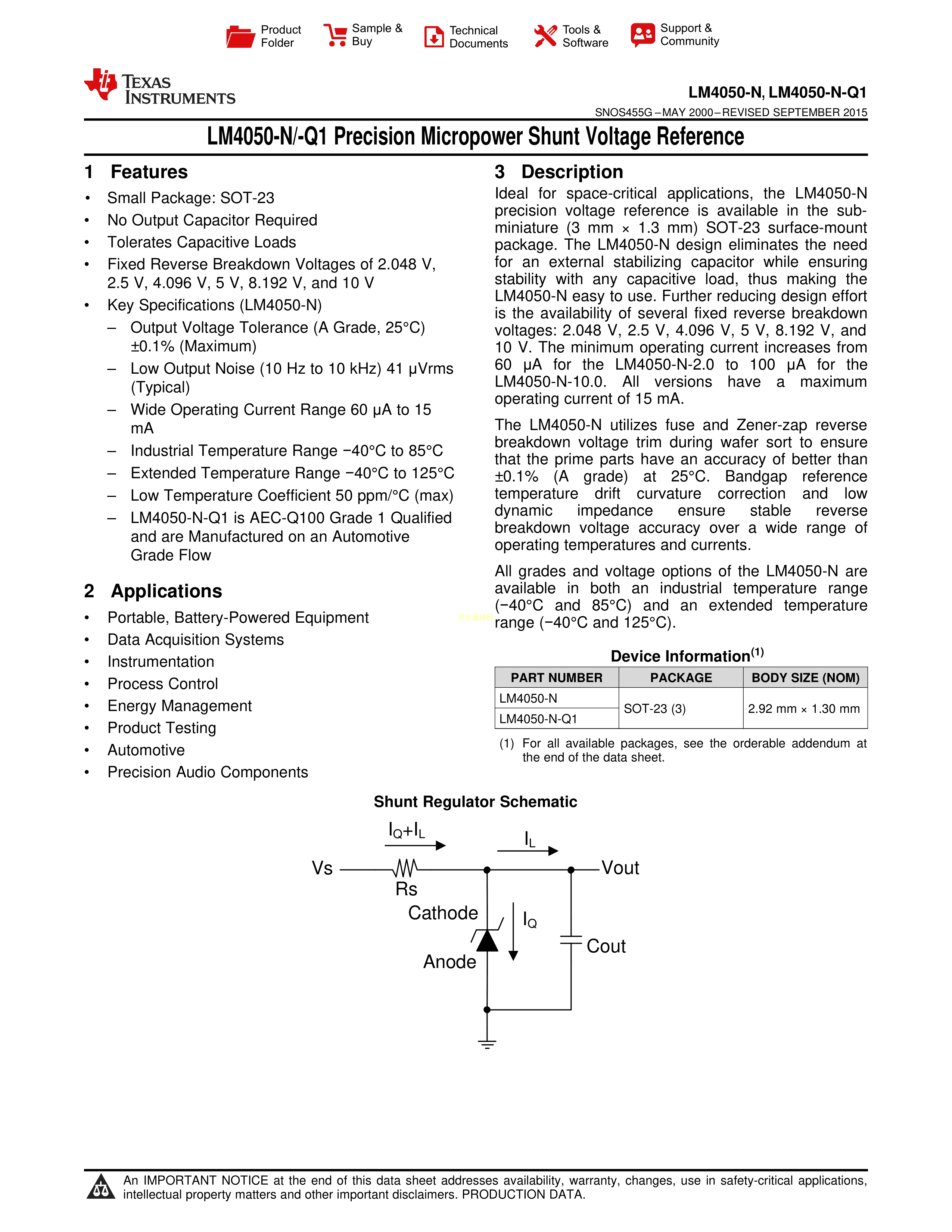 LM4050AIM3-5.0-NOPB数据手册SOT-23(SOT-23-3)封装TI(德州仪器)PDF规格书,中英文下载
