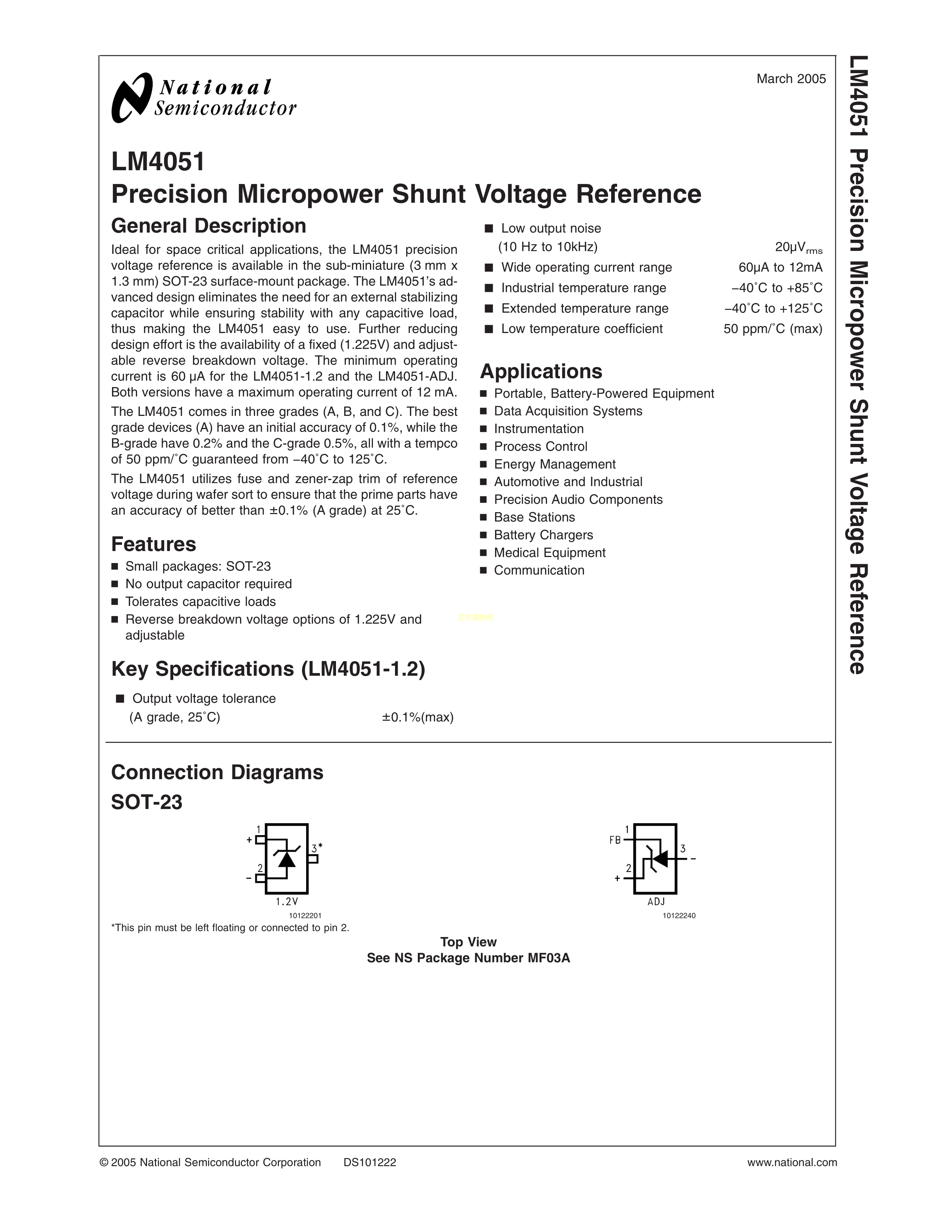LM4051AIM3X-ADJ-NOPB数据手册SOT-23(SOT-23-3)封装TI(德州仪器)