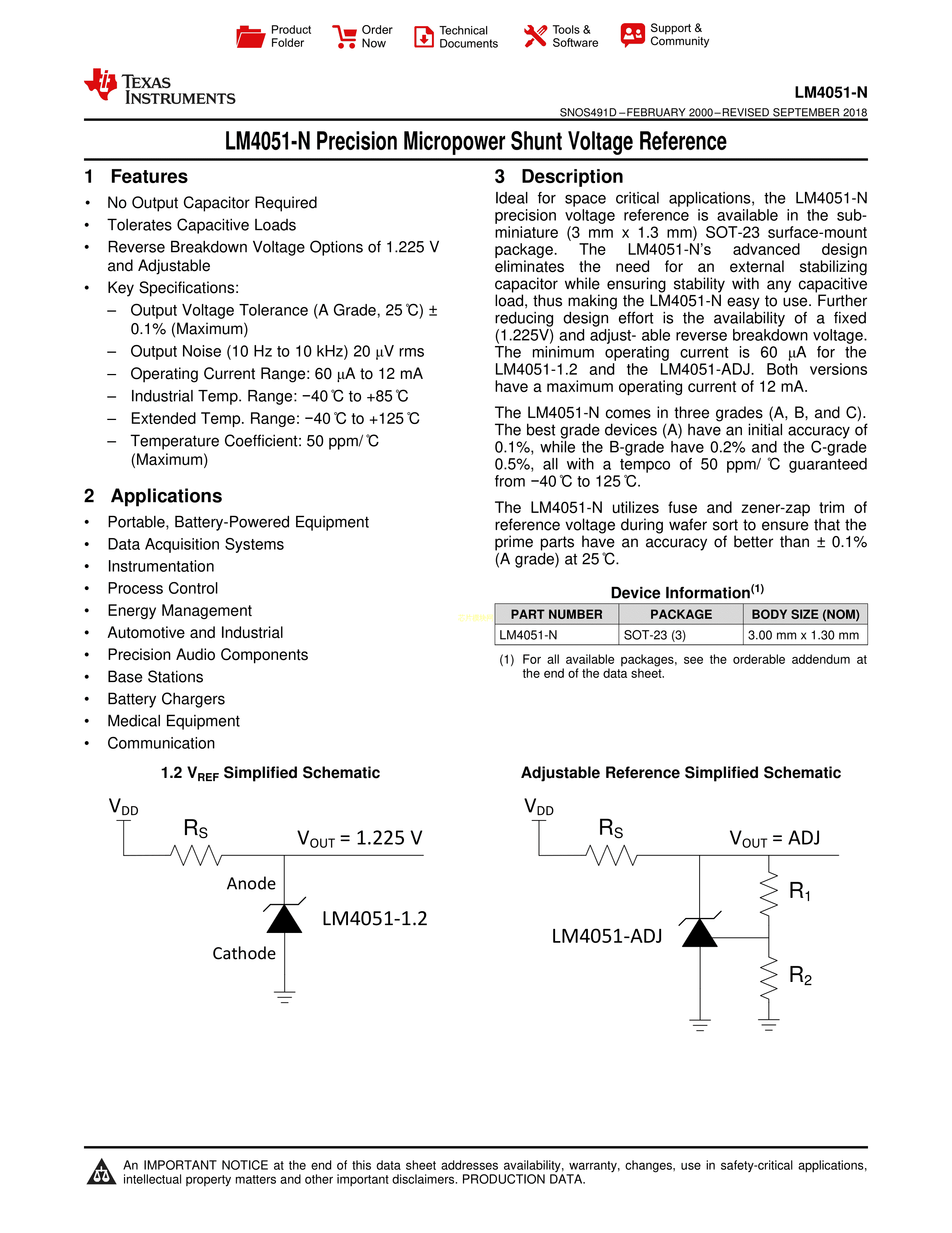 LM4051CIM3-1.2-NOPB数据手册SOT-23-3封装TI(德州仪器)PDF规格书,中英
