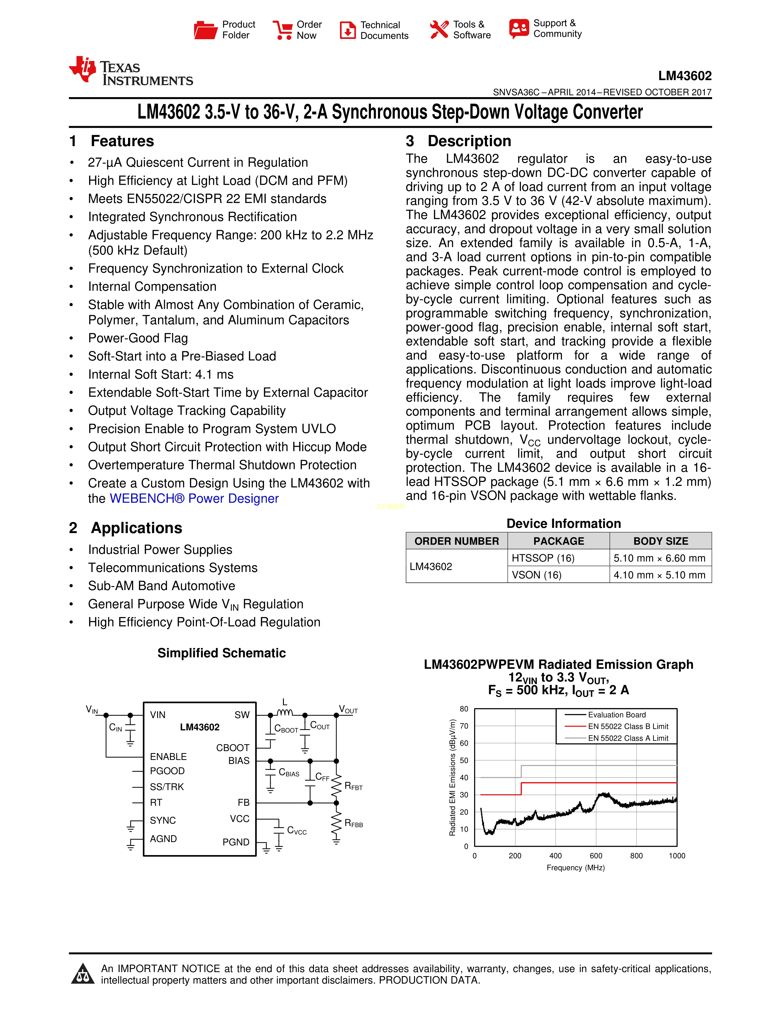 LM43602PWPT数据手册HTSSOP-16封装TI(德州仪器)PDF规格书,中英文下载