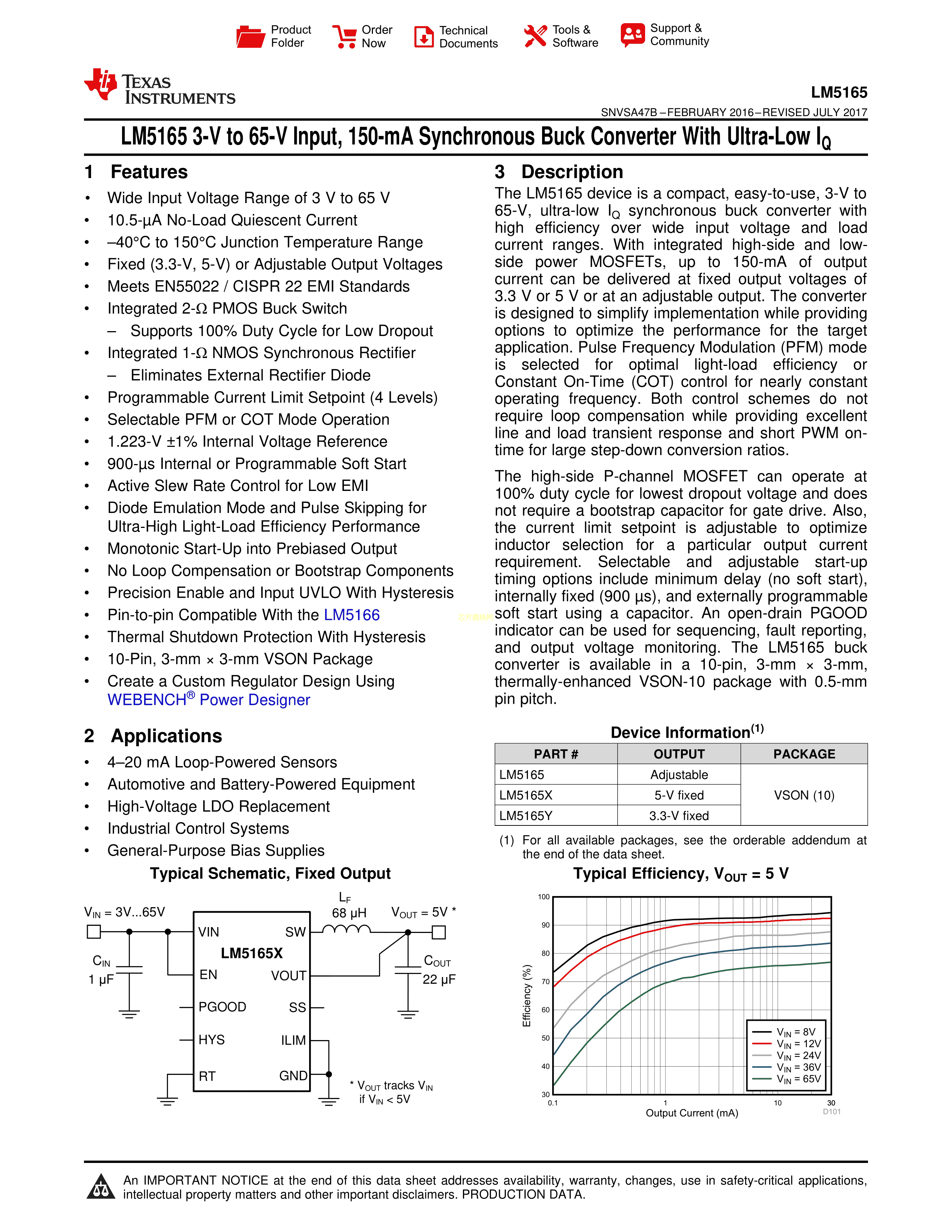 LM5165DRCR数据手册VSON-10封装TI(德州仪器)PDF规格书,中英文下载