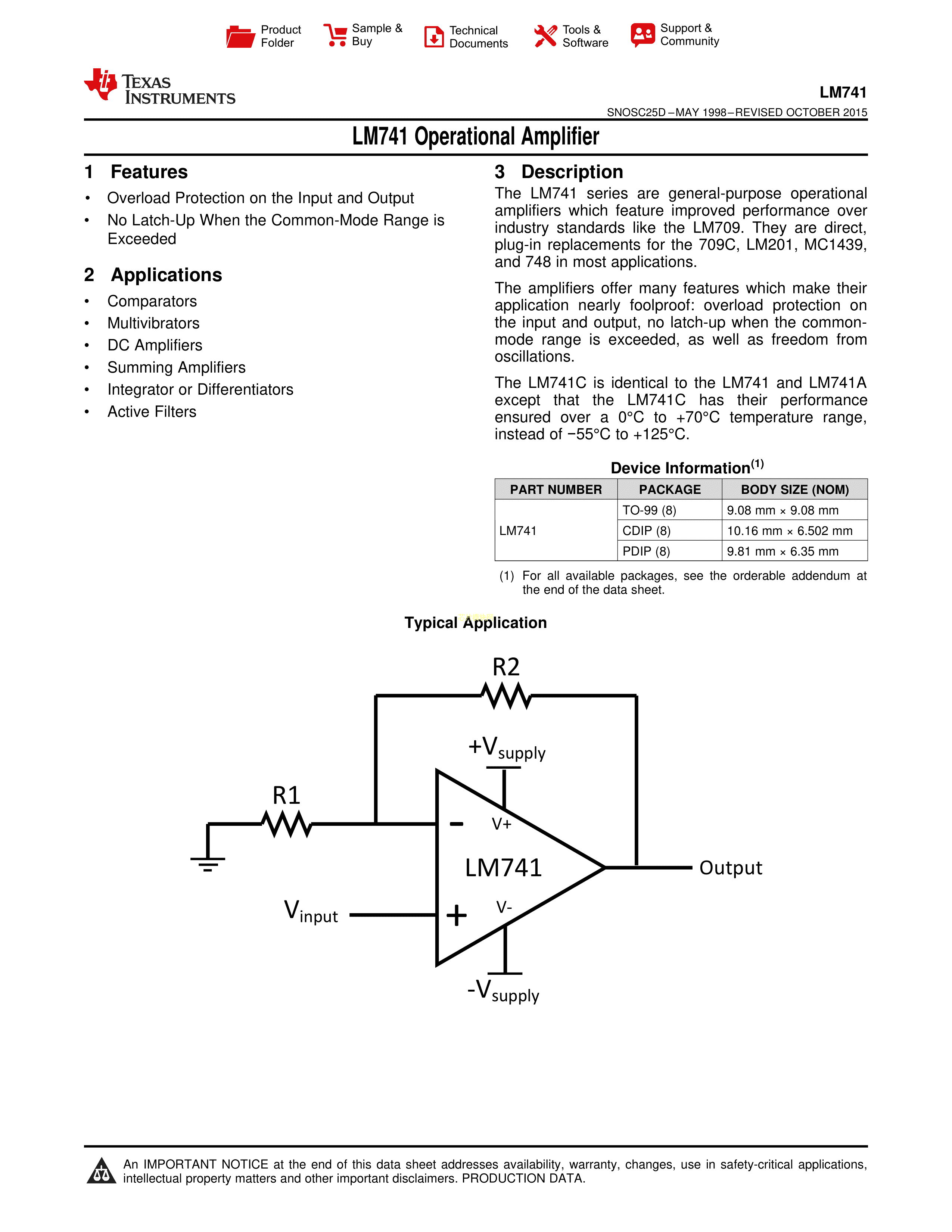 LM741H数据手册TO-99-8封装TI(德州仪器)PDF规格书,中英文下载