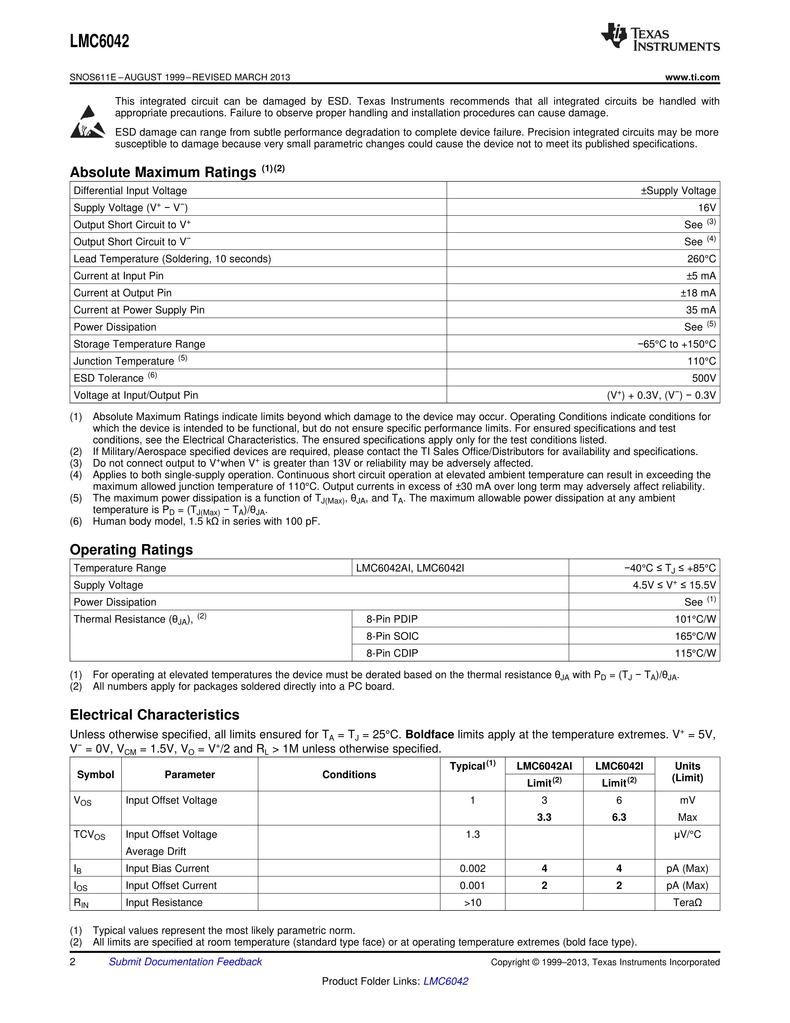 LMC6042IM-NOPB数据手册SOIC-8_150mil封装TI(德州仪器)PDF规格书,中英