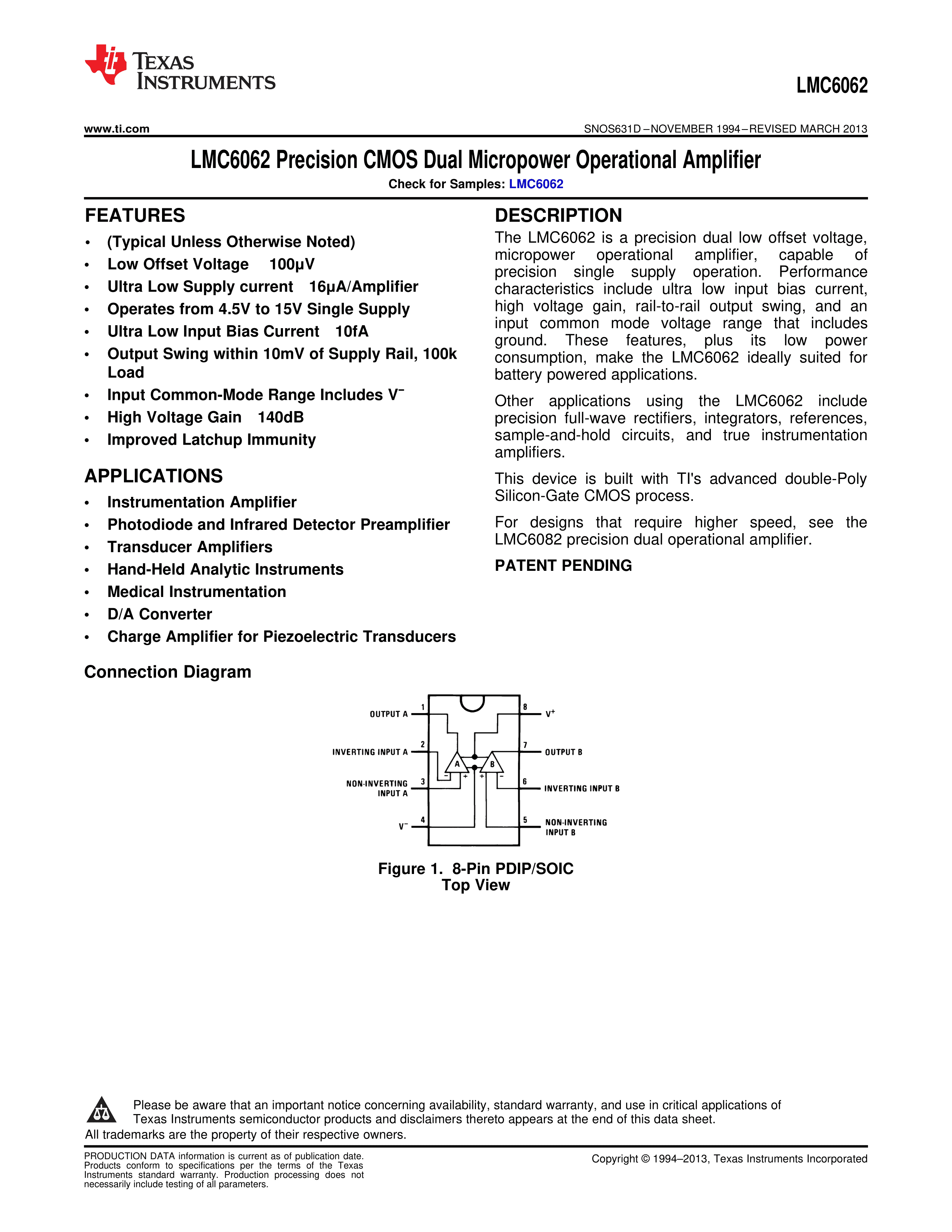 LMC6062IM-NOPB数据手册SOIC-8_150mil封装TI(德州仪器)PDF规格书,中英