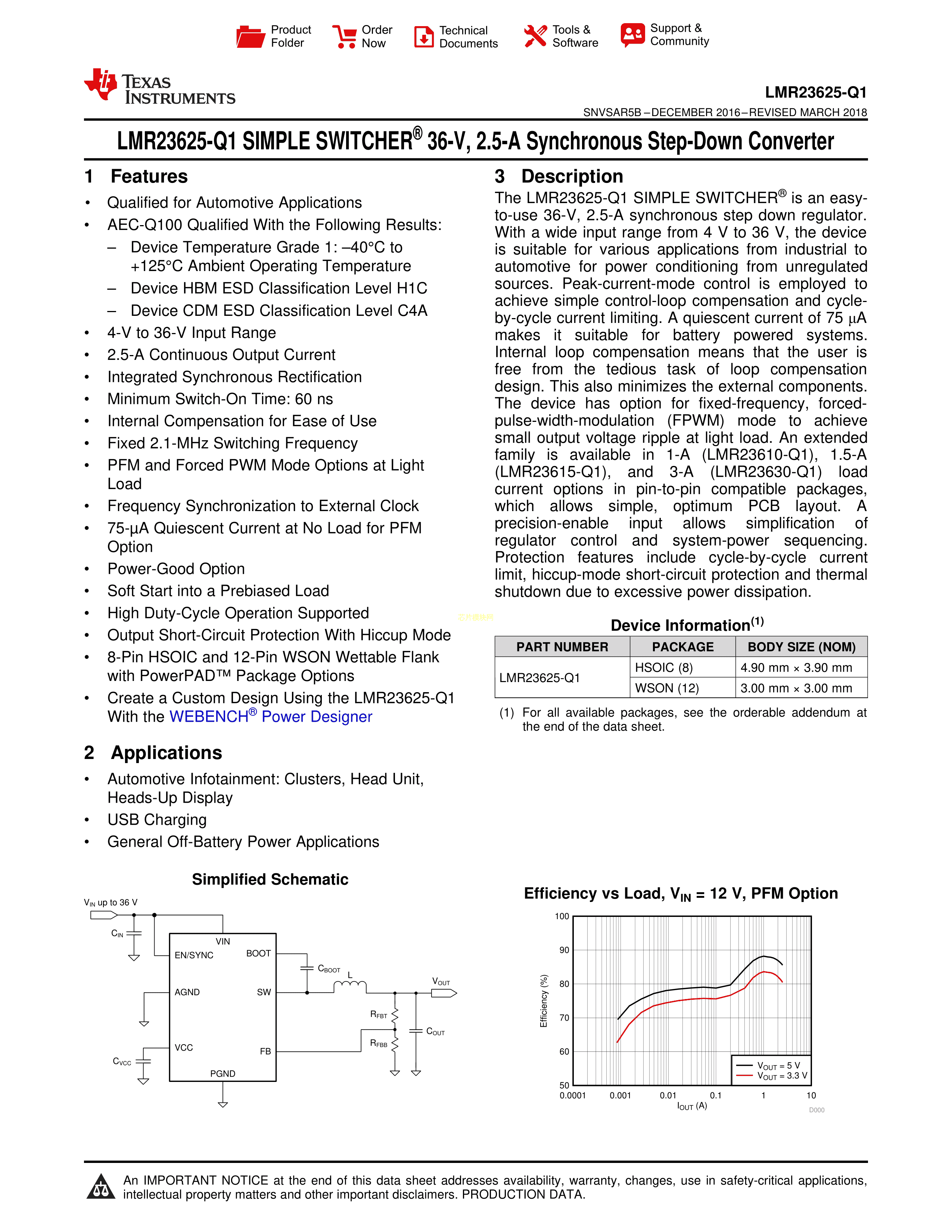 LMR23625CFQDDARQ1数据手册PowerPad-SO-8封装TI(德州仪器)PDF规格书