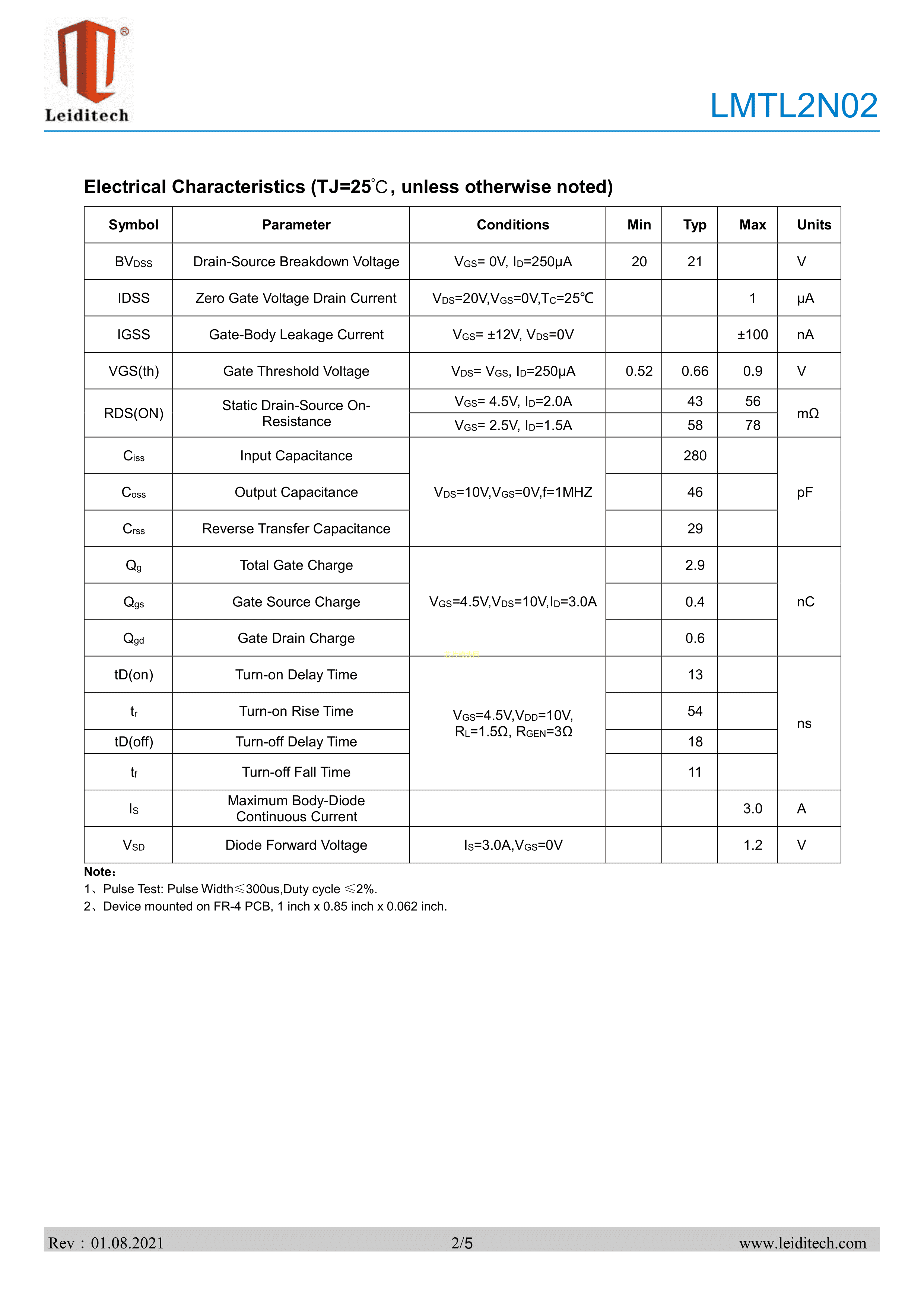 LMTL2N02数据手册SOT-23封装Leiditech(雷卯电子)PDF规格书,中英文下载