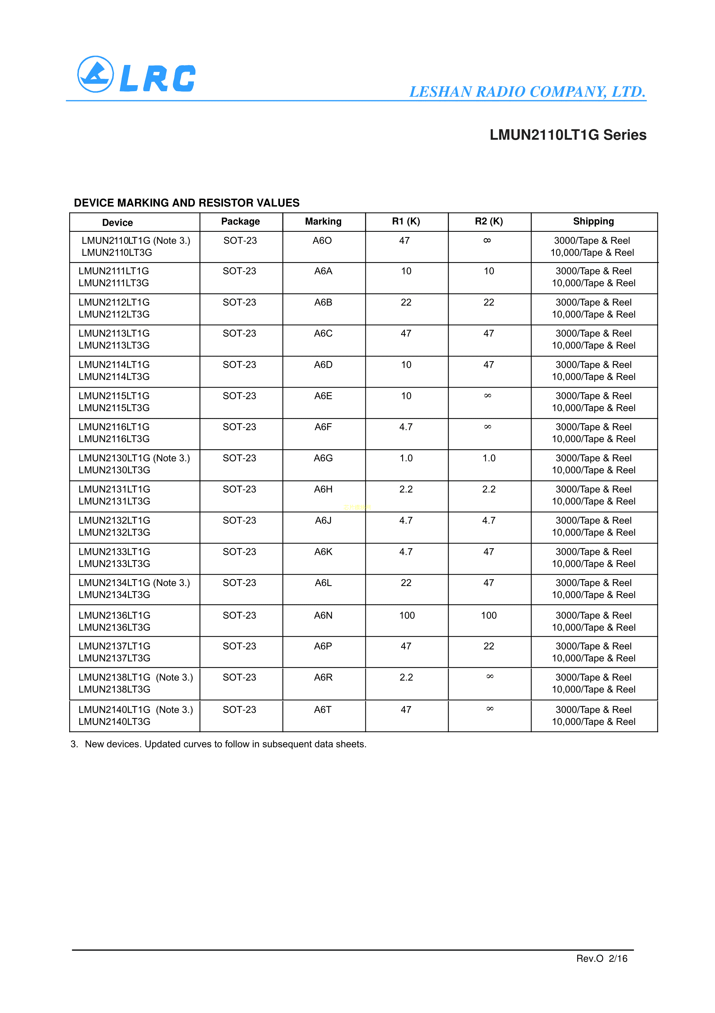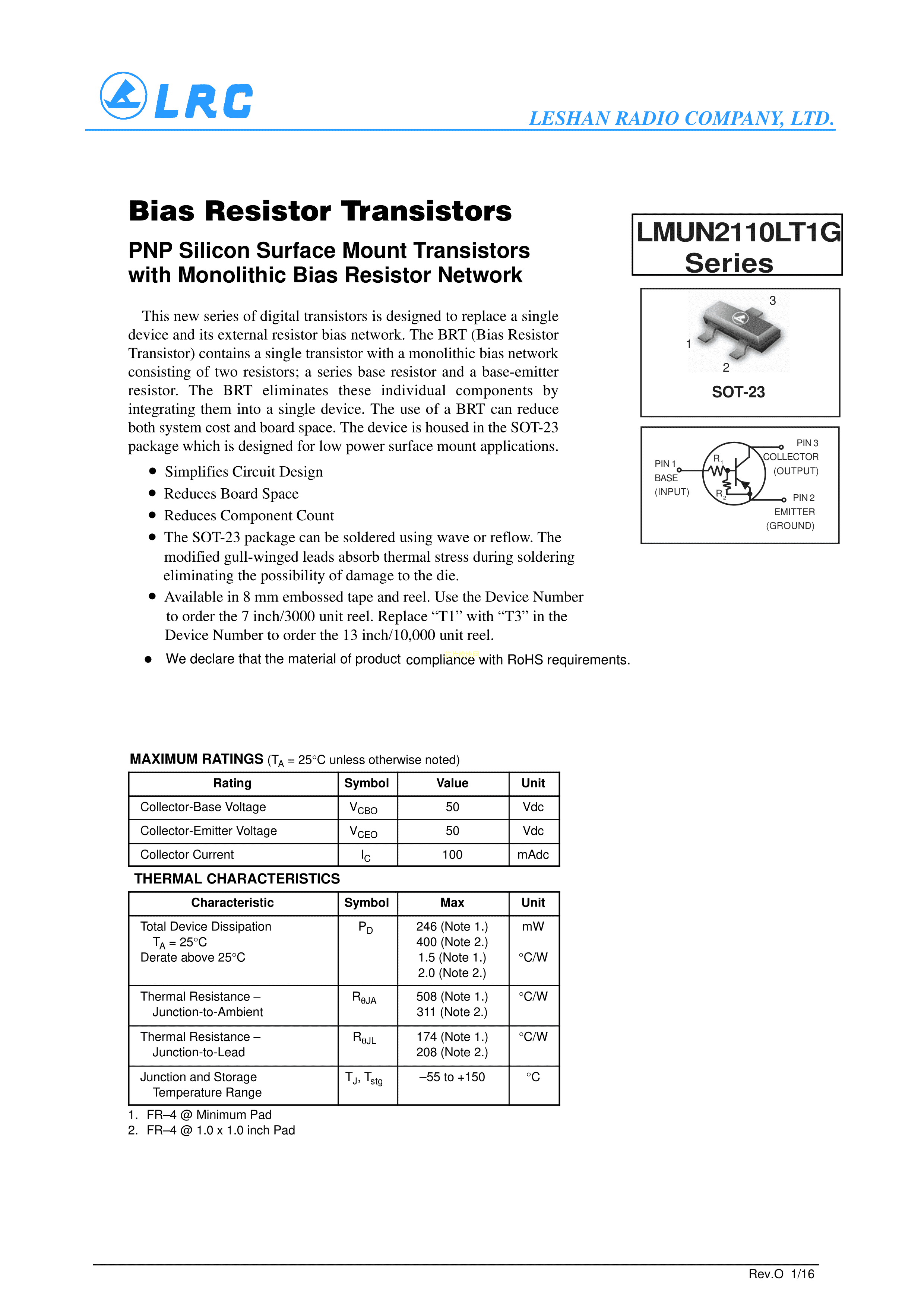 LMUN2112LT1G数据手册SOT-23(SOT-23-3)封装LRC(乐山无线电)PDF规格书