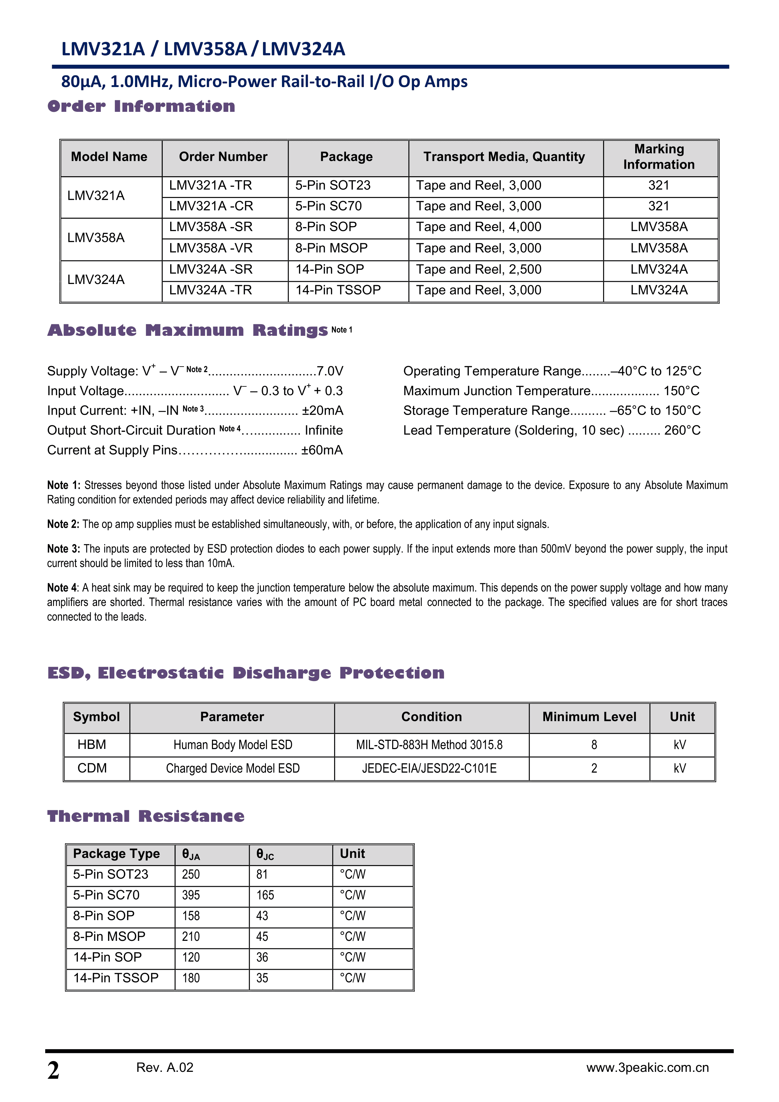 LMV358A-VR数据手册MSOP-8封装3PEAKPDF规格书,中英文下载