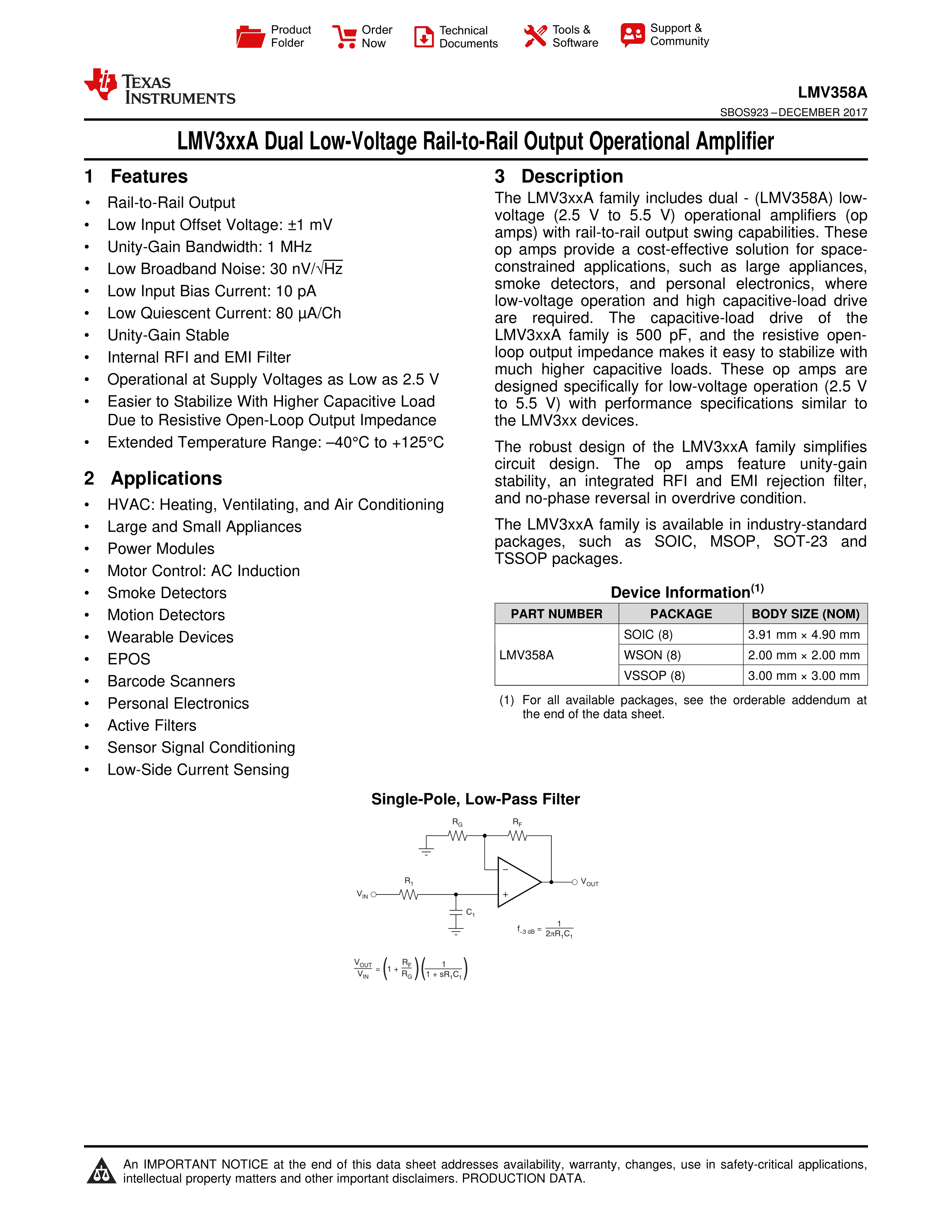 LMV358AIDR数据手册SOIC-8_150mil封装TI(德州仪器)PDF规格书,中英文下载