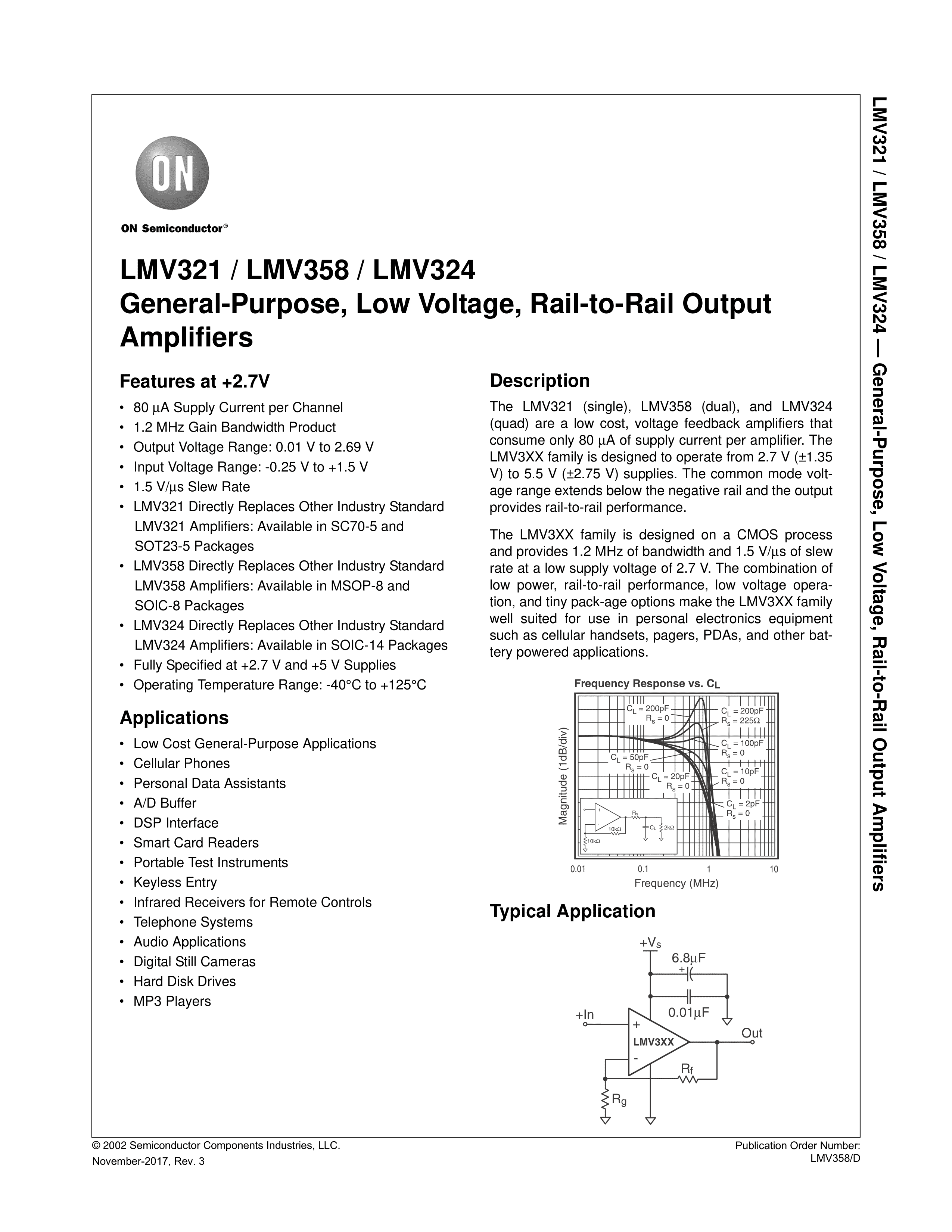 LMV358AMU8X数据手册MSOP-8封装onsemi(安森美)PDF规格书,中英文下载