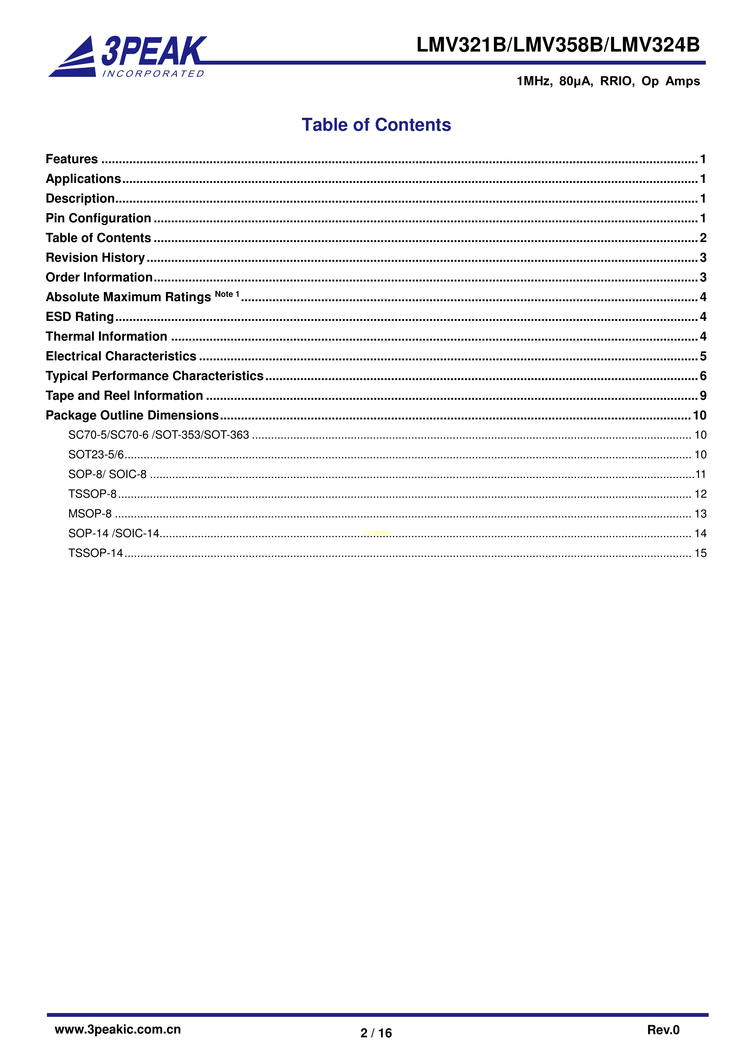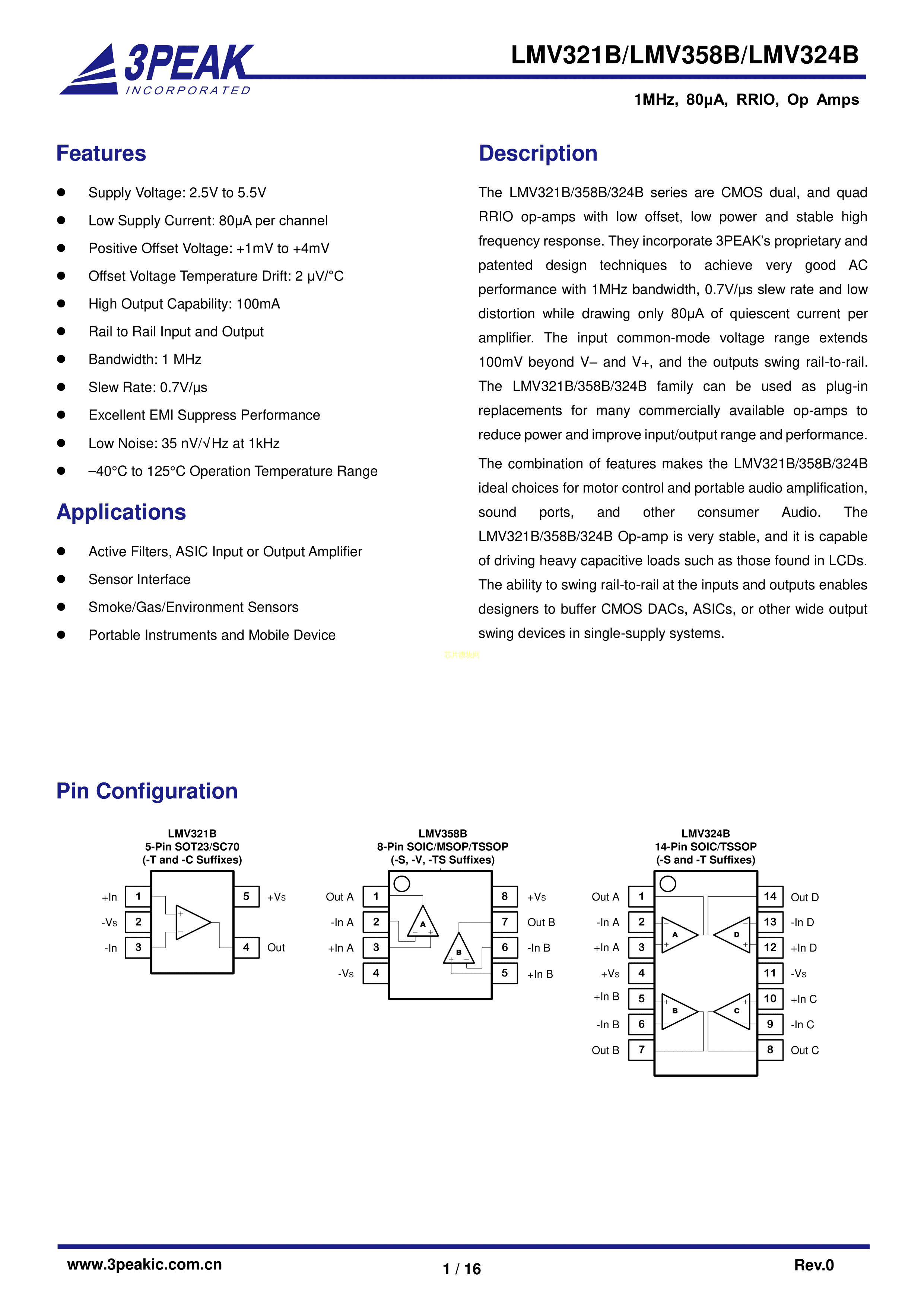 LMV358B-VR数据手册MSOP-8封装3PEAKPDF规格书,中英文下载