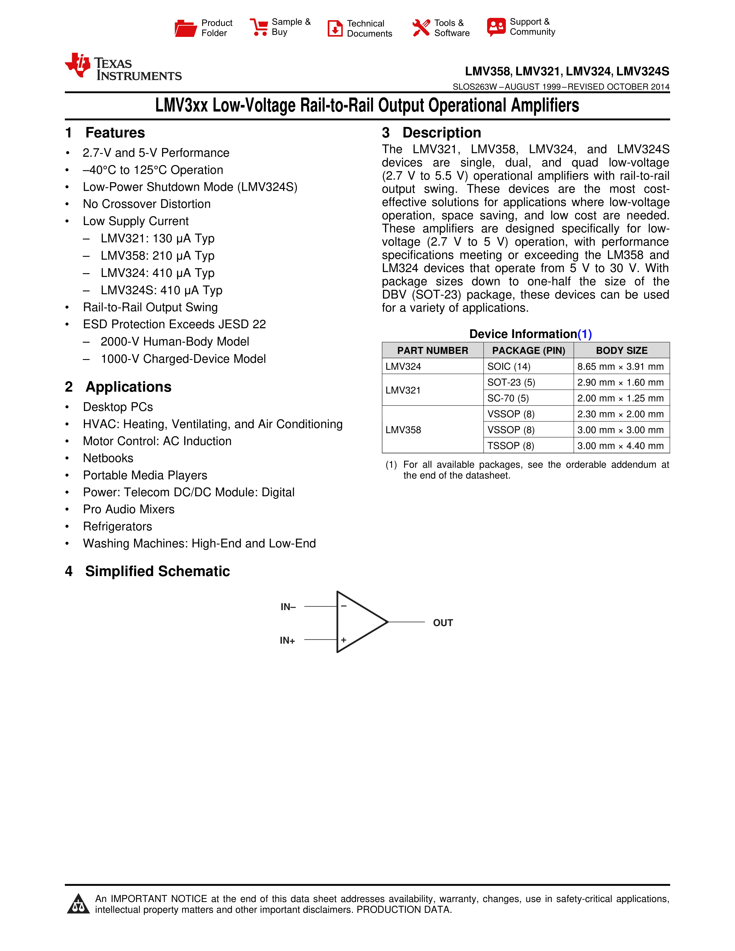 LMV358IDR数据手册SOIC-8_150mil封装TI(德州仪器)PDF规格书,中英文下载