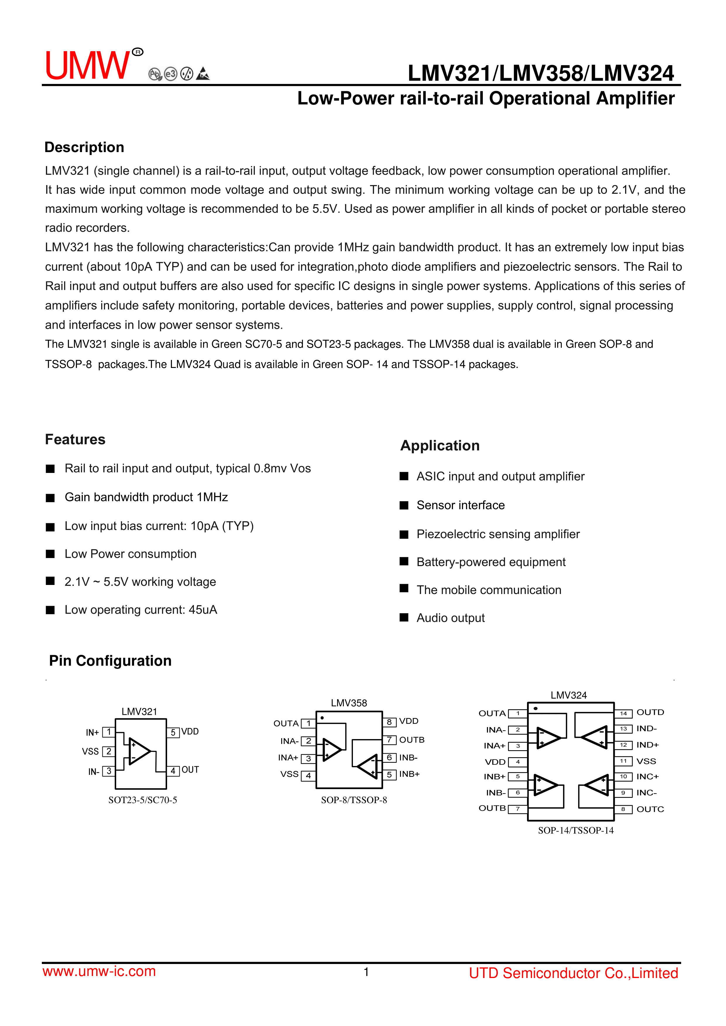 LMV358IDR数据手册SOP-8封装UMW(友台半导体)PDF规格书,中英文下载