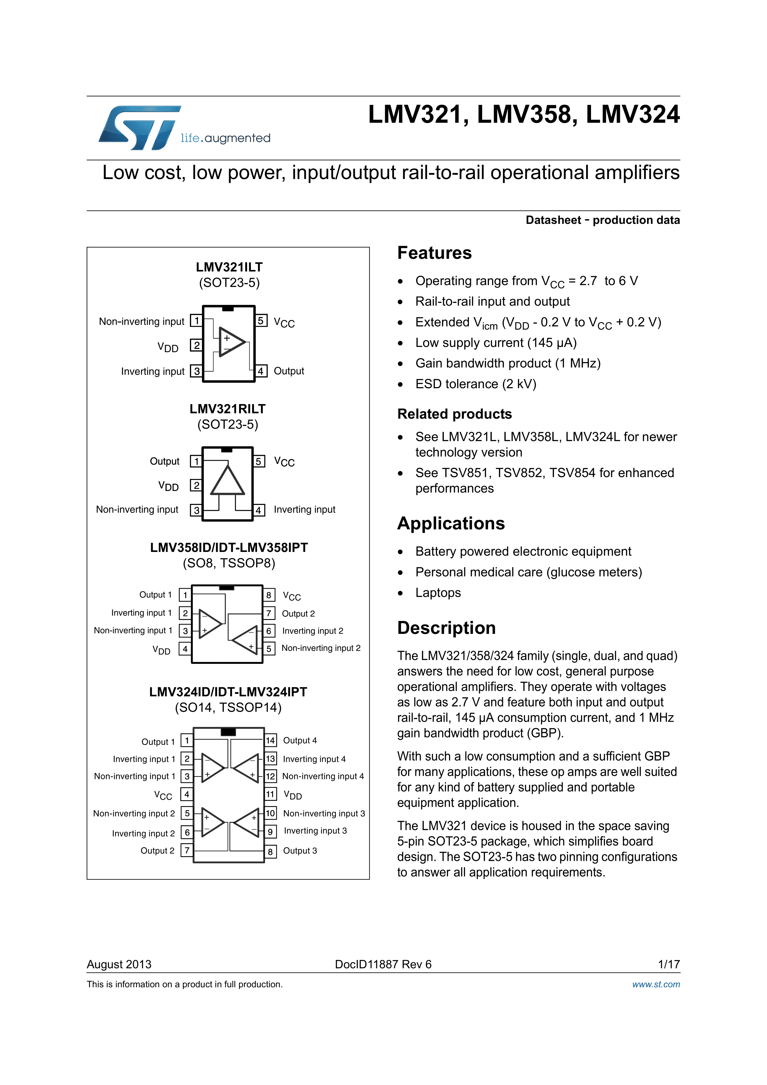 LMV358IDT数据手册SOIC-8_150mil封装ST(意法半导体)PDF规格书,中英文下载