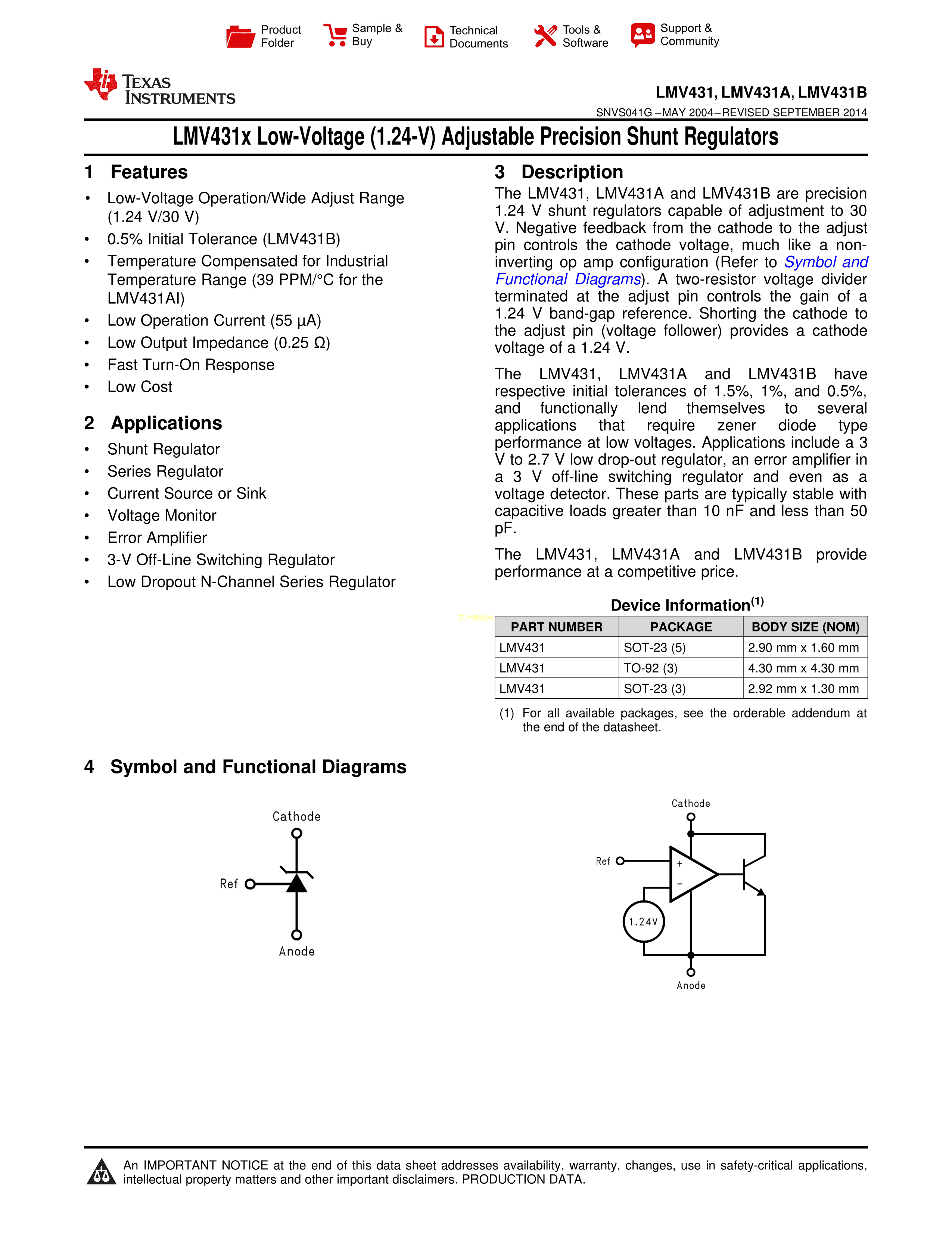 LMV431BIMFX-NOPB数据手册SOT-23-3封装TI(德州仪器)PDF规格书,中英文下载