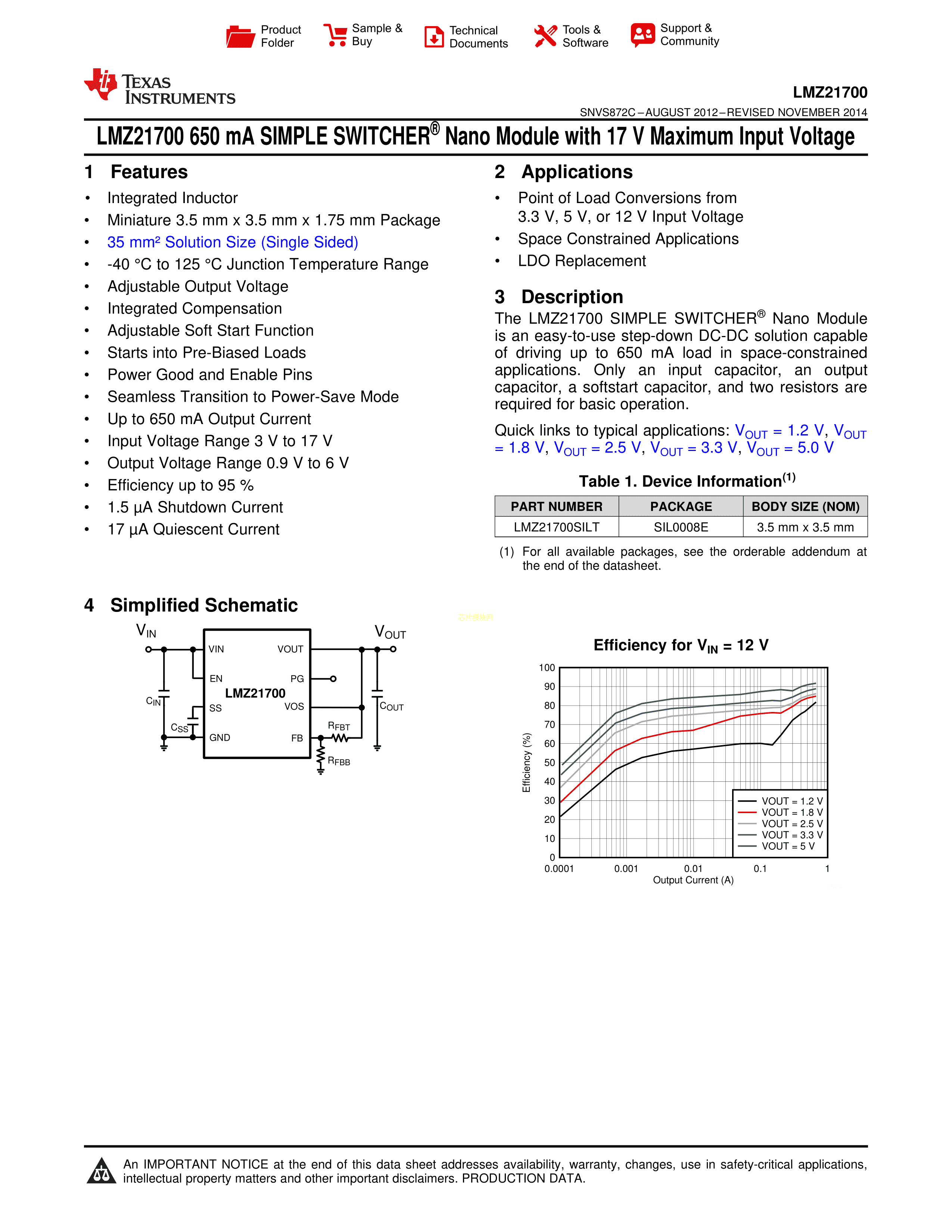 LMZ21700SILR数据手册uSIP-8封装TI(德州仪器)PDF规格书,中英文下载