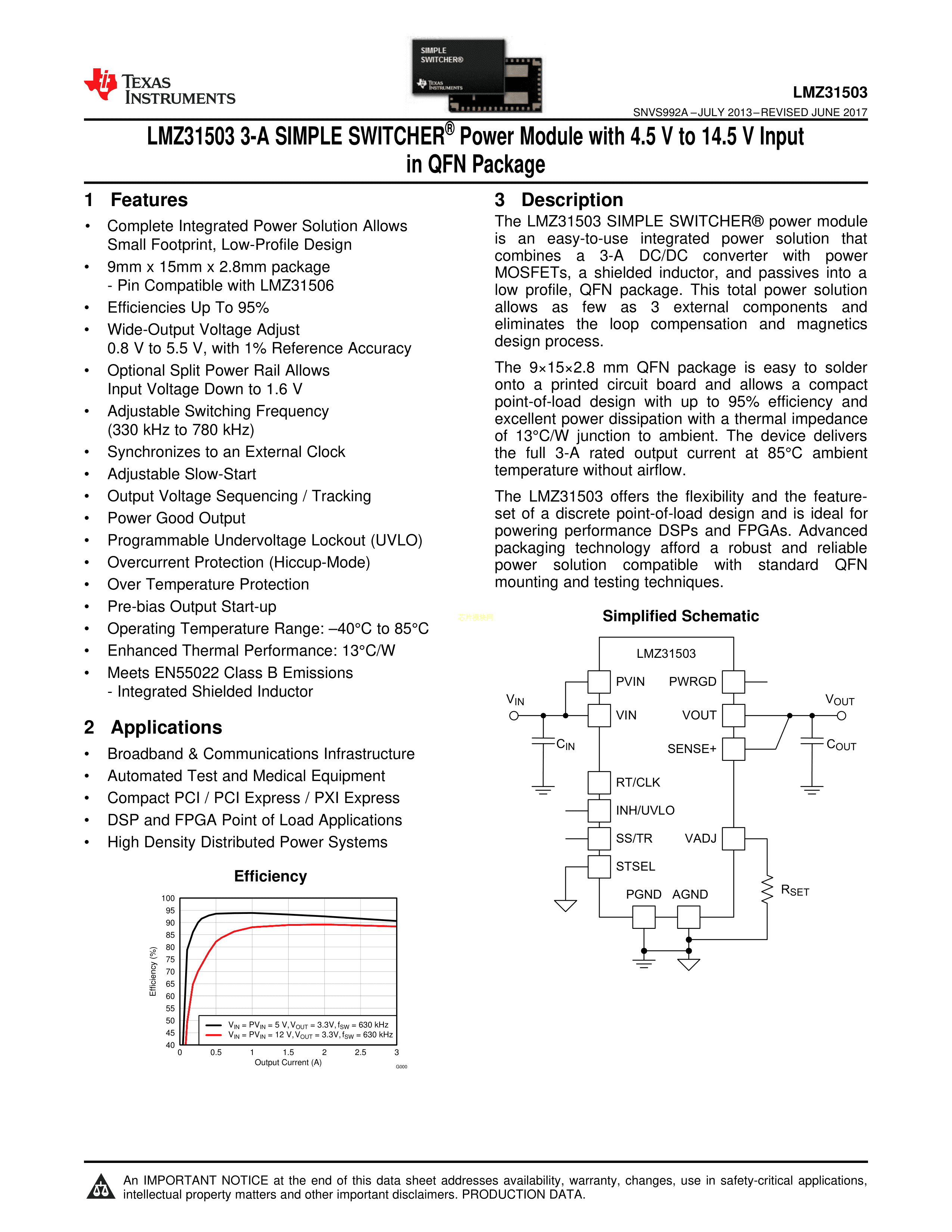 LMZ31503RUQT数据手册B1QFN-47封装TI(德州仪器)PDF规格书,中英文下载