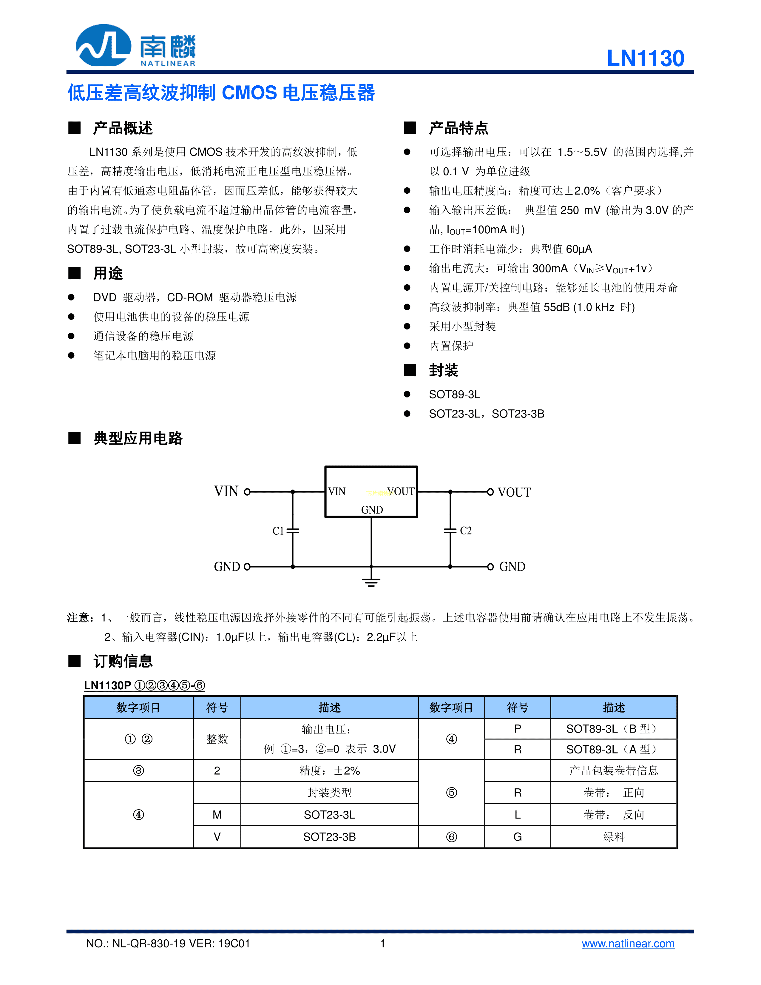 LN1130P332MR-G数据手册SOT-23-3L封装natlinear(南麟)PDF规格书,中英文下载